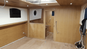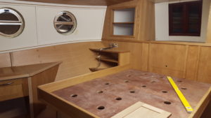 The aft cabin is still progressing well with lots of additional fittings in place.