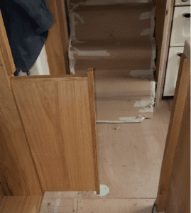 I like this touch with a sliding gate fitted into the side units. If we need to control dog access then it just slides across the entrance so that the dogs can be contained to an area overnight or if they are a bit wet.