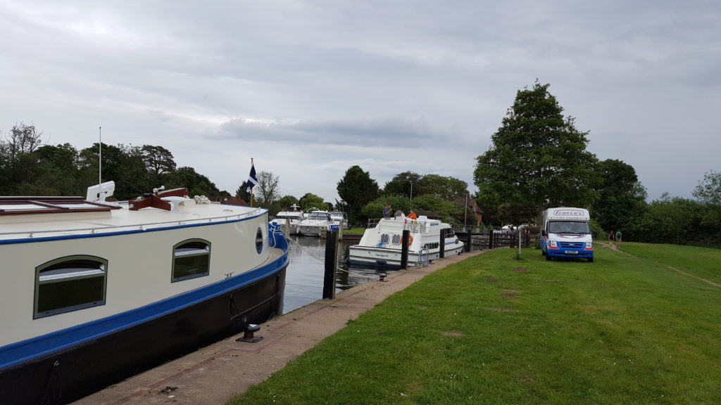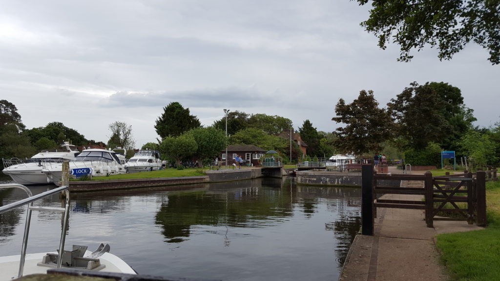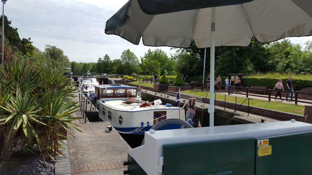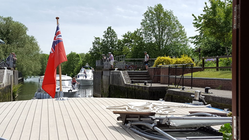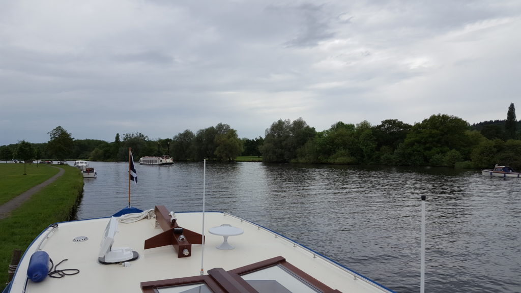 And as if that was not bad enough, I then had to come out of the lock with a bit of speed to clear the river flow but unfortunately I allowed myself to get distracted, and the next thing I knew we were closing fast on the bank and trees with Nicki luckily managing to avoid being swept overboard! Full reverse and both thrusters kept us out of most of it, but sadly, to add even more embarrassment to an awkward situation, we had just come out of the lock with half a dozen boats following us, so the whole incident was fairly public …. not my best moment.