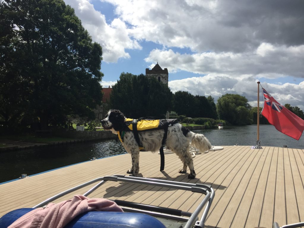 Milly took the stop as an opportunity to get as far away from the boat as possible.  She really does not like this very much.