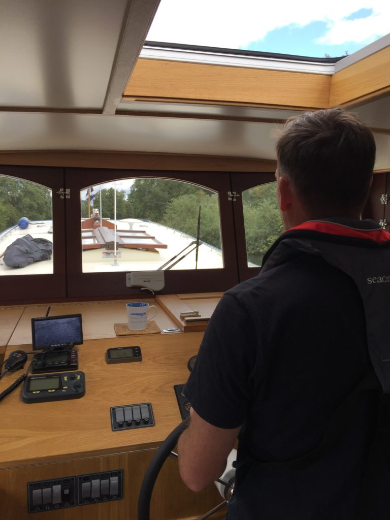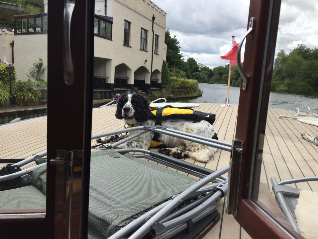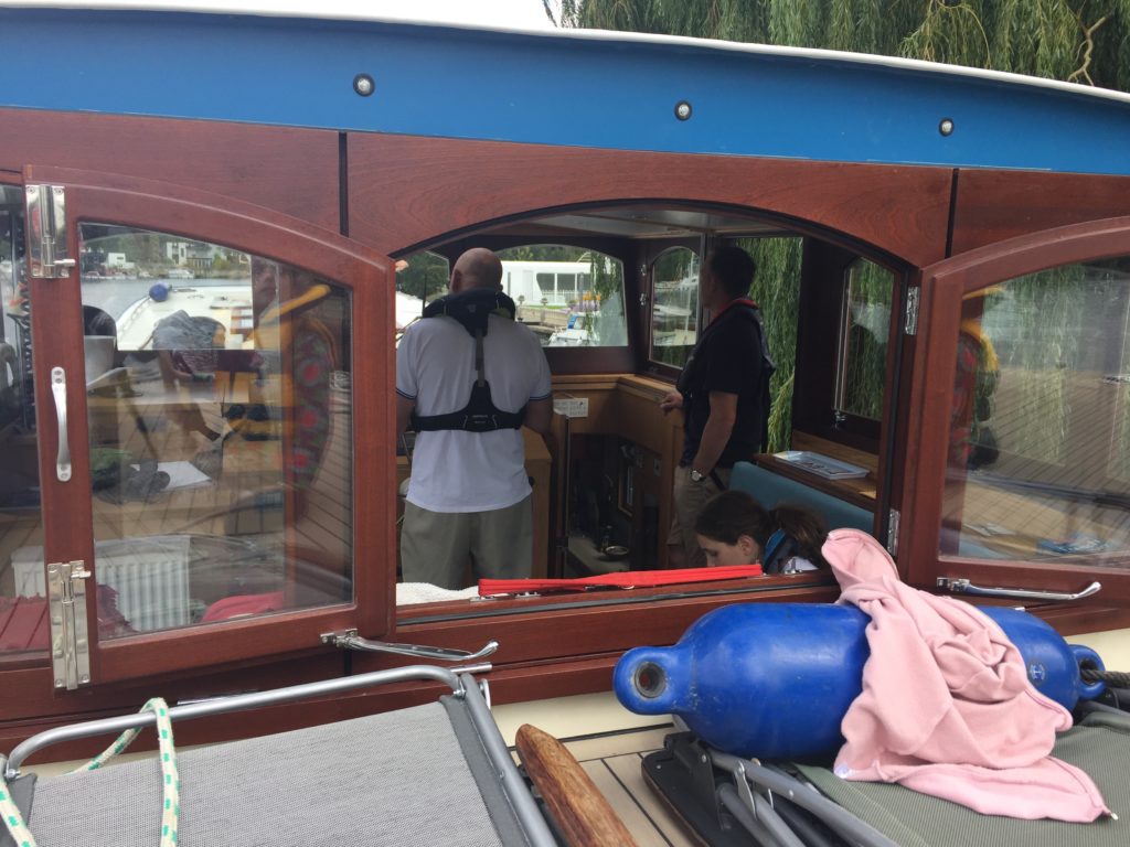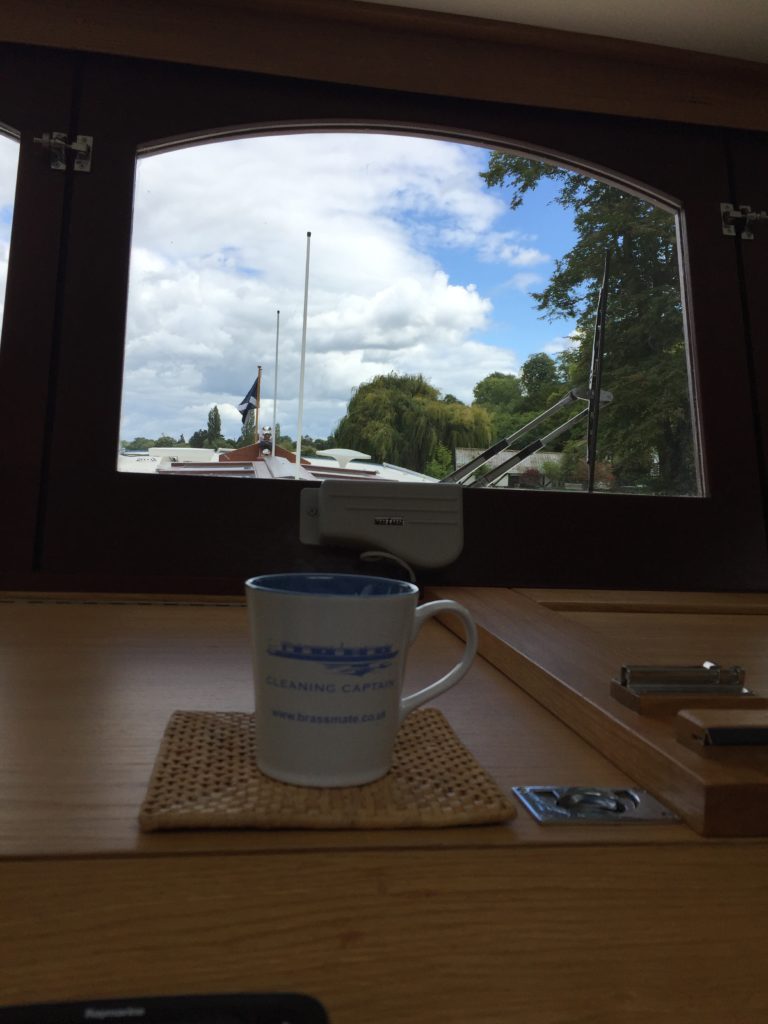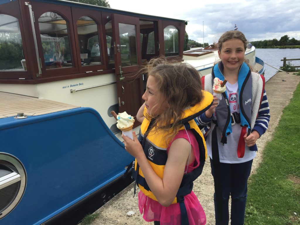 Today was probably the windiest that it has ever been for us out on the river and it was definitely challenging at times.  We moored up at Bourne End for lunch (with an ice cream van close at hand), and in the process we treated a passing barge-enthusiast to a tour of the boat.