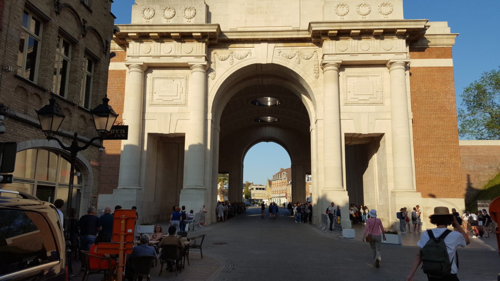 Later in the day we arrived in the small town of Ypres at the top of the Izer, taking about the last slot for a barge of our size in the small harbour. Here we were greeted by our first ‘WOB’s (Women on Board), Jenny and Carol, plus their other halves. We were very quickly invited for a tour of a neighbouring barge by Carol on Silk Purse, followed by a quick meal before wandering off into town to the Menin Gate for th