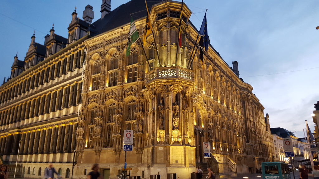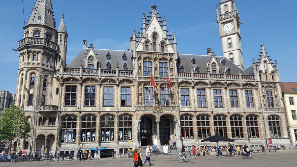 The day after the rally there was a mass refuelling with a tanker delivering fuel to each barge in turn. Barges began to depart and everything seemed to calm down a little after all the excesses of the previous few days. Janos and Rachel had agreed that Janos would stay with us a little longer, so she headed off back to the US and we carried on with our visit to Ghent for the last time. In the afternoon we walked into the town again to visit the Belfry. (Belfries were a sign of opulence for the cities and functioned to regulate daily activity by marking the time. They also acted as early warning against invaders and keeping a watch out for fires in the city.)