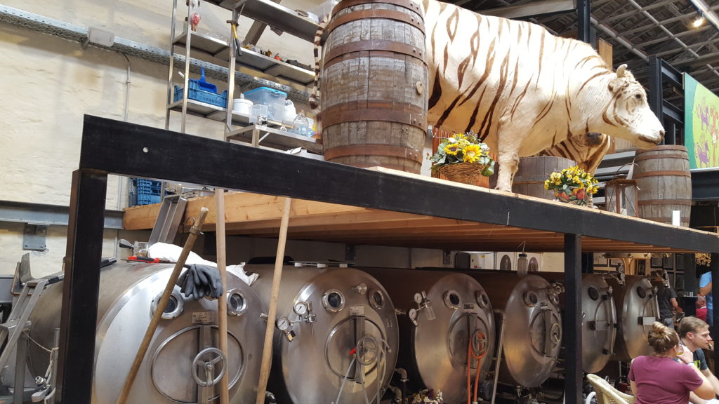 Beer tasting in a local brewery – the interesting art exhibits were left by the previous occupants of the building. After a brief talk about the brewery’s history and how it brewed its beer, we had the chance to try out several of the products ……
