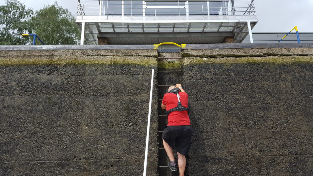 We passed through several more locks and in one of them we used the opportunity to top up our water tank. We were going down in the lock so access to the hose was easy but as we dropped 5 meters, more and more hose had to be pulled down. Fortunately we got to the bottom at just about the same time as the tank was full. I say fortunately but there was no chance that I could turn off the tap from that distance and so I had to scramble up the ladder, turn off the supply, pull in the hose, get down again, all very quickly as there was another ship waiting to enter the lock by then.