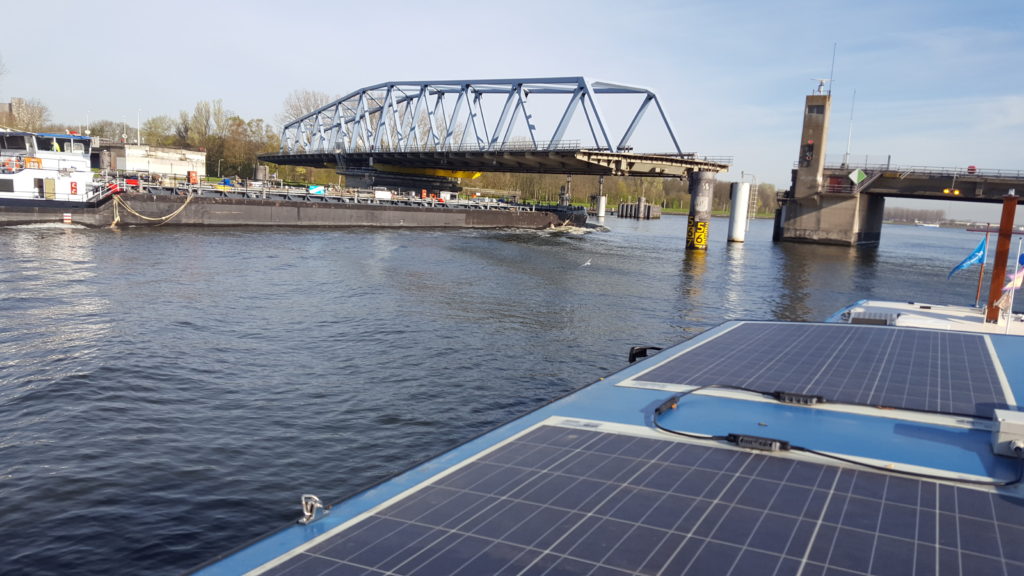As we had planned, the tide was in our favour and we reached a massive speed of 18.3km at one point, whilst trying to stay in the shipping lanes and avoiding the various buoys that littered the way. At this point we were feeling pretty good and happy with our progress, but sadly it didn’t last. We felt a hefty bump to the boat, and another, and then realised that we had run aground on a sandbank – that definitely slowed us down for a short while, but with lots of panicky patience and lots of engine noise we managed to get underway again. We were extremely glad to reach our final lock of the day, Sluis Hansweert, pass through and out onto the Kanaal door Zuidbeveland.