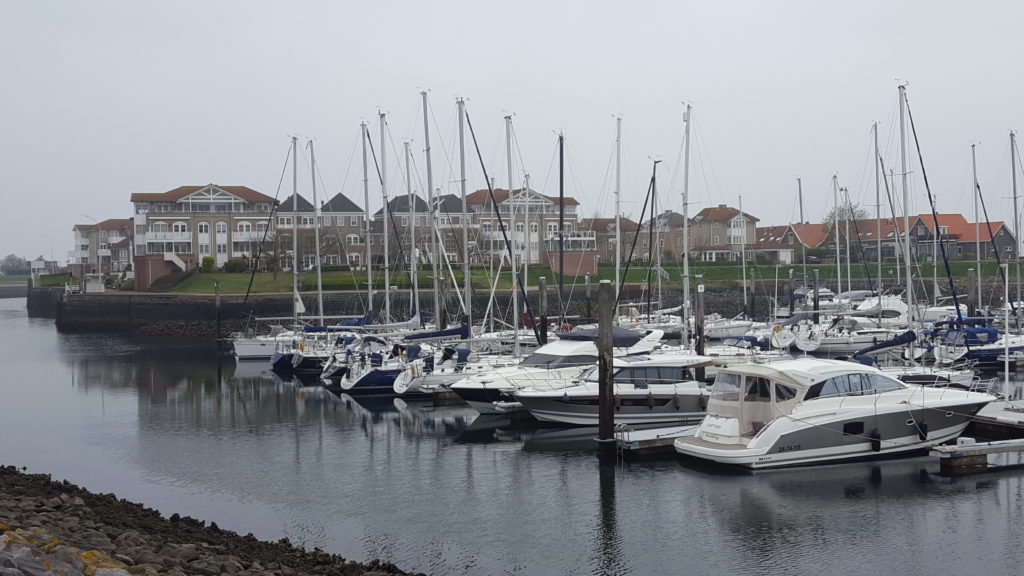 Finally, after a long, long day of traveling, we arrived at our intended destination of Wemeldinge (a village in the province of Zeeland, located in the municipality of Kapelle, about 4 km northwest of Yerseke) and happily the jachthaven turned out to be a large, modern, clean marina with plenty of space for us amongst all the smart yachts and catamarans. We quickly moored up and took the dogs off for a much-needed wee break before dinner, tv and bed.