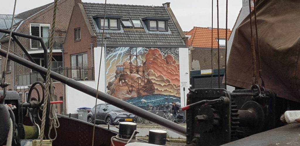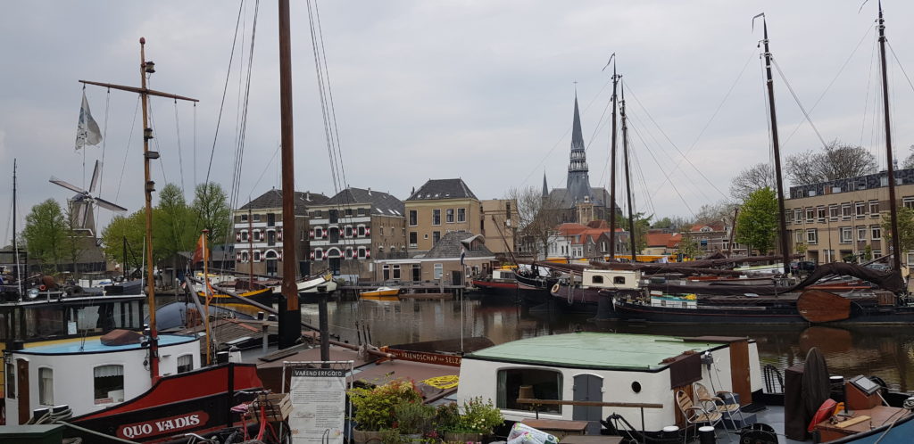 Then it was a fairly sedate passage until we hit Gouda where we found a mooring on the river close to the town centre (just getting in before a yacht which then ended rafted up to us for the night). The mooring was next to the lock going into the town, not too expensive and with water and electricity included (although the electric didn’t actually work), and as we finished roping up, along came the lock-keeper, Robert, to chat and find out what our plans were, and he gave us lots of tips and good advice on places to visit in Gouda and on our travels.
