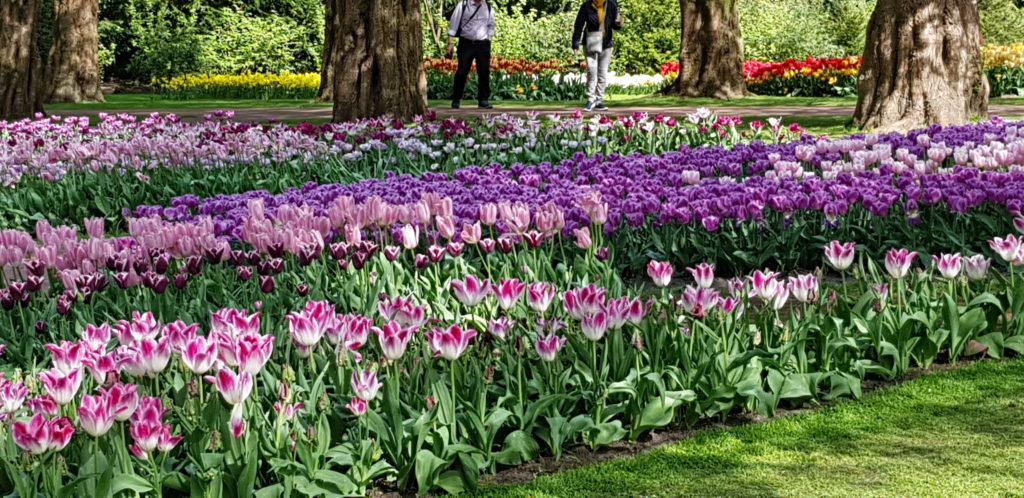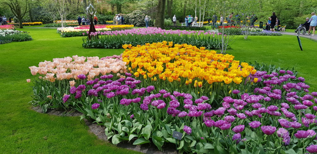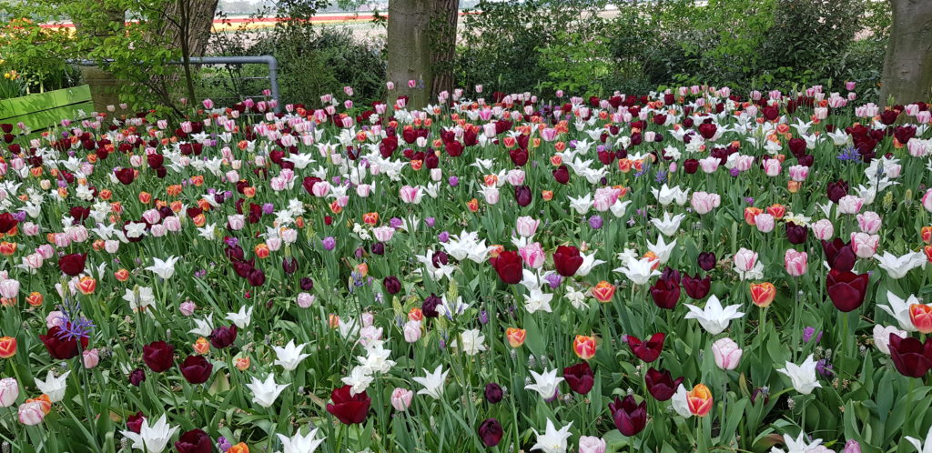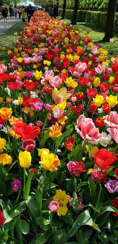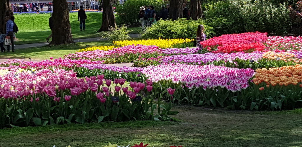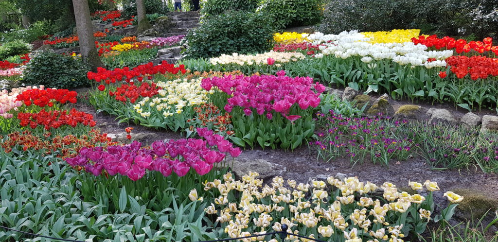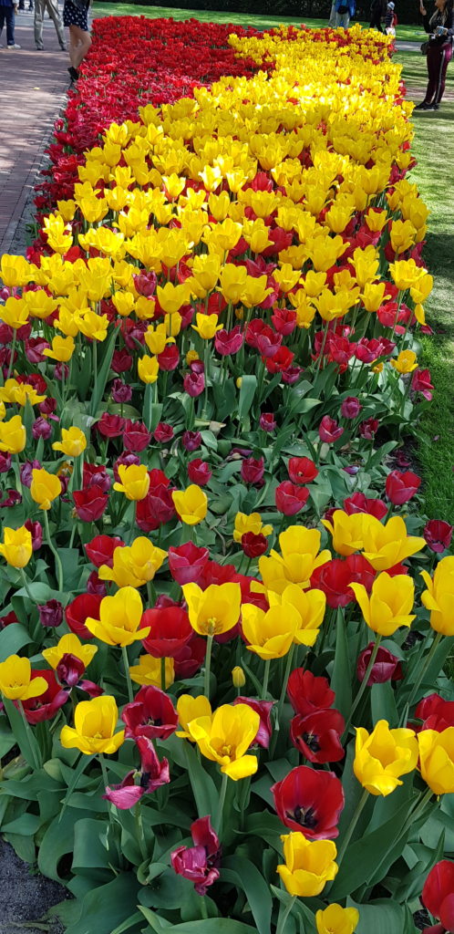 Spent a lovely couple of days in Lisse (a town south west of Amsterdam, known for the Keukenhof gardens, which has millions of spring-flowering bulbs and outside of town, pedestrian and bike paths wind around flower fields in the country’s tulip-growing region.) Our first day there and we cycled around some of the many bulb fields taking lots of pics of all the beautiful tulips. Our second day we spent several hours at the Keukenhof gardens admiring all the flowers and exhibitions. And it wasn’t all just tulips, there were orchid and amaryllis displays too. It’s hard to believe the number of varieties and colours – there’s even a variety of tulip called Nicolette, although we didn’t come across that one. Managed to walk over 16000 steps while we were there.