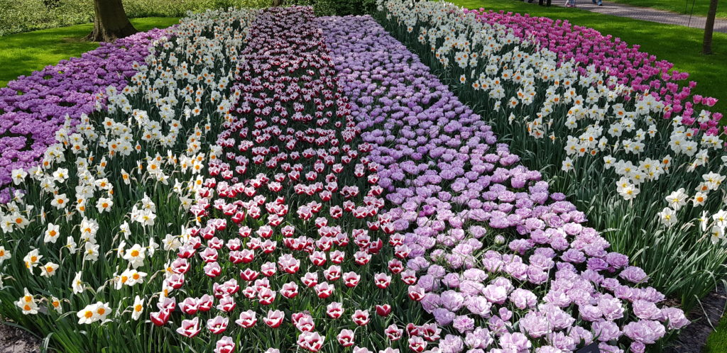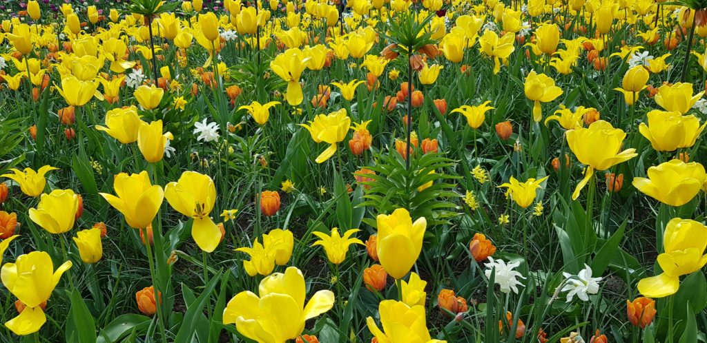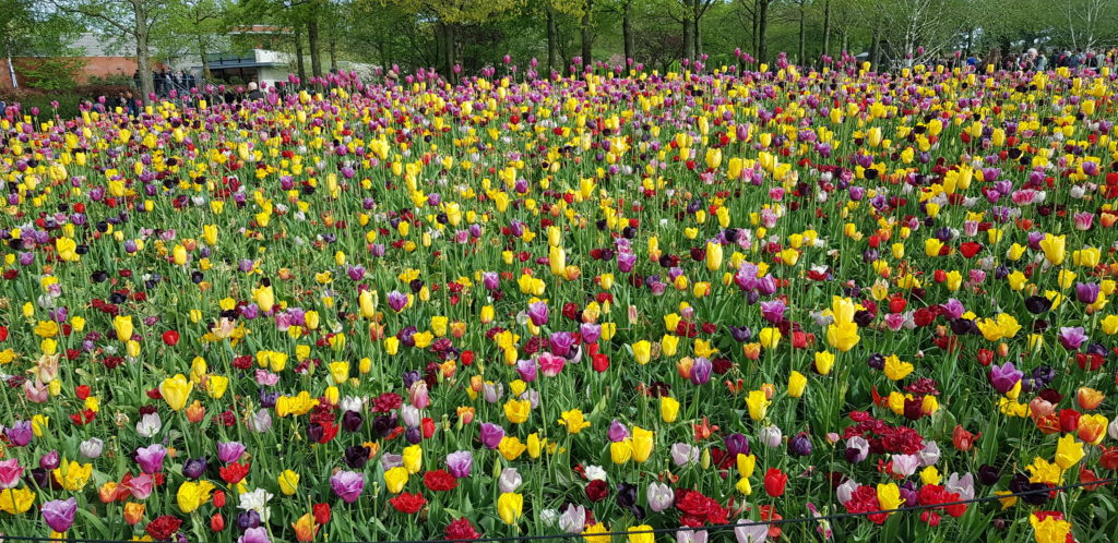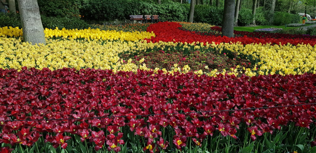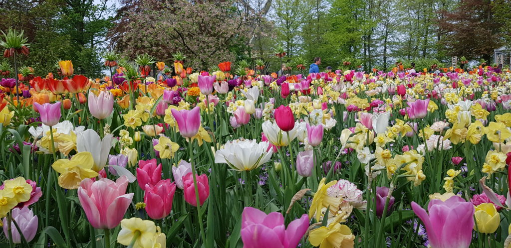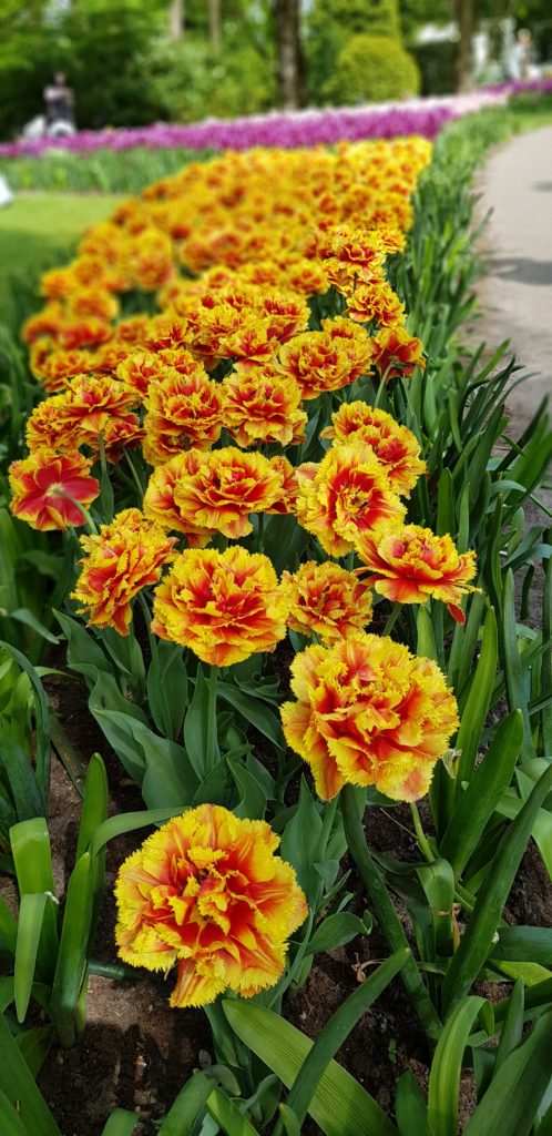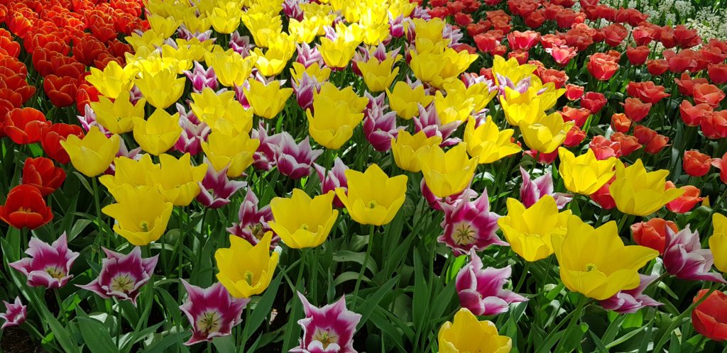 Spent a lovely couple of days in Lisse (a town south west of Amsterdam, known for the Keukenhof gardens, which has millions of spring-flowering bulbs and outside of town, pedestrian and bike paths wind around flower fields in the country’s tulip-growing region.) Our first day there and we cycled around some of the many bulb fields taking lots of pics of all the beautiful tulips. Our second day we spent several hours at the Keukenhof gardens admiring all the flowers and exhibitions. And it wasn’t all just tulips, there were orchid and amaryllis displays too. It’s hard to believe the number of varieties and colours – there’s even a variety of tulip called Nicolette, although we didn’t come across that one. Managed to walk over 16000 steps while we were there.
