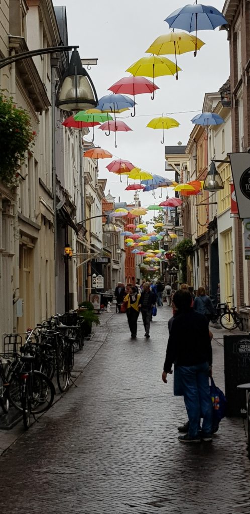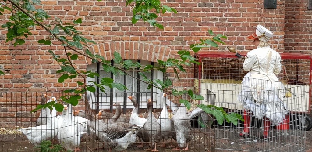 Deventer was our next stop and also the place where Tim and Glynis would leave us to travel back to Delfsen, collect their car and return to the UK. But before that we explored the town – the marina was a bit outside of the town so we did a lot of walking but it was worth it. Deventer was lovely and full of surprises. One of these was the spectacle of geese being paraded through the streets by two people dressed in geese costumes, and strangely the locals we spoke to didn’t know the background to this, which seemed a bit odd as it was a very quirky event. One even went so far as to say she’d lived there all her life and had never seen it happen before – so I guess we were extremely lucky to catch it.