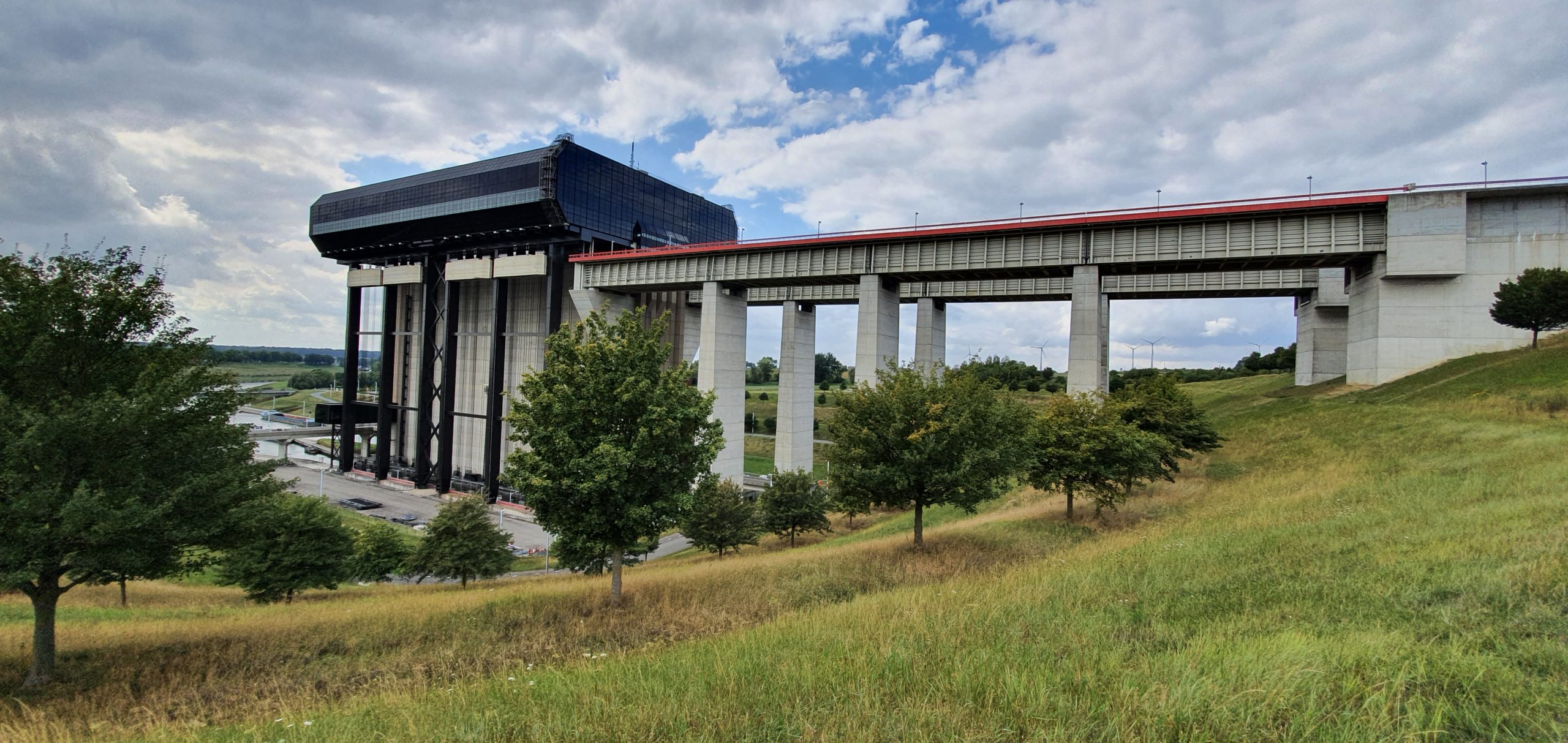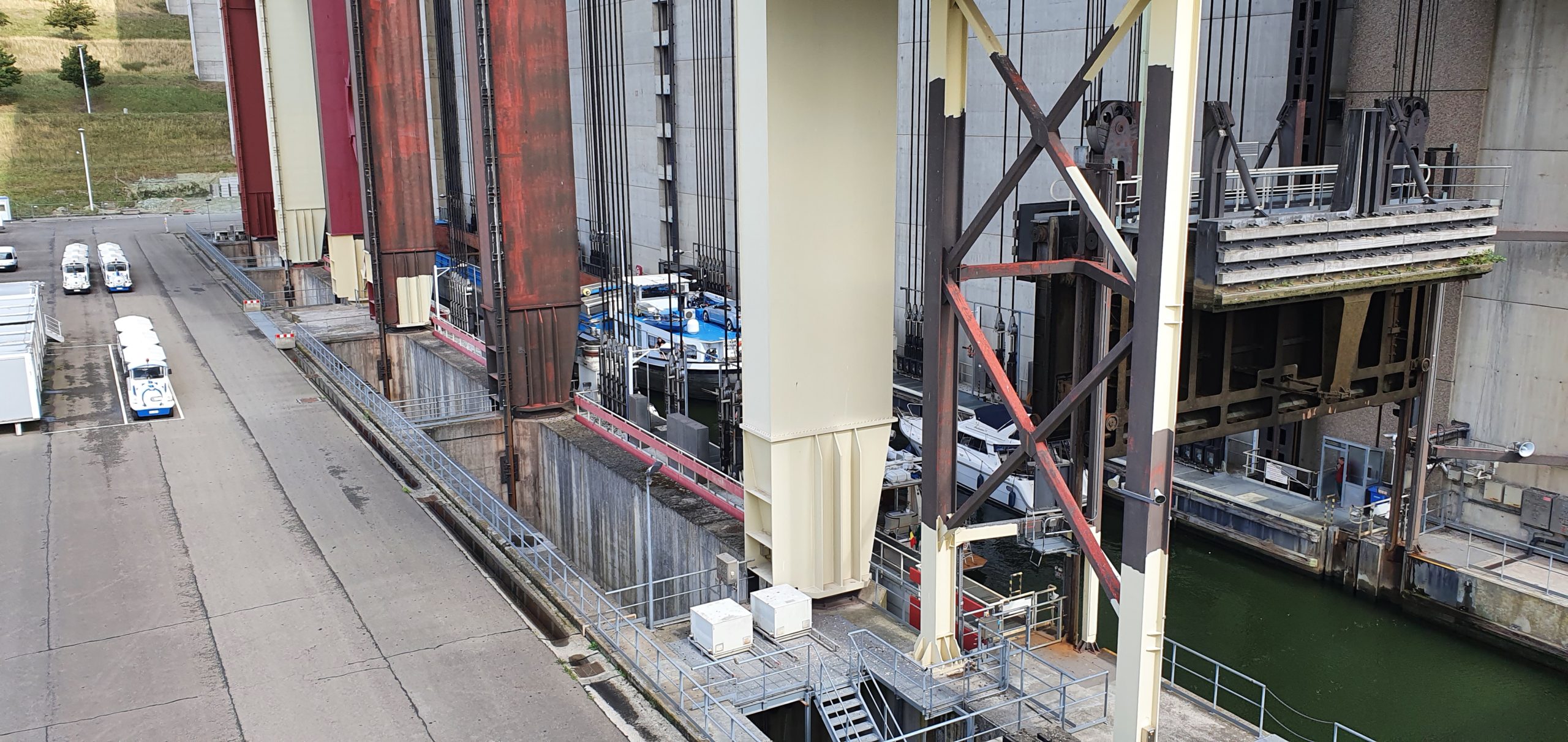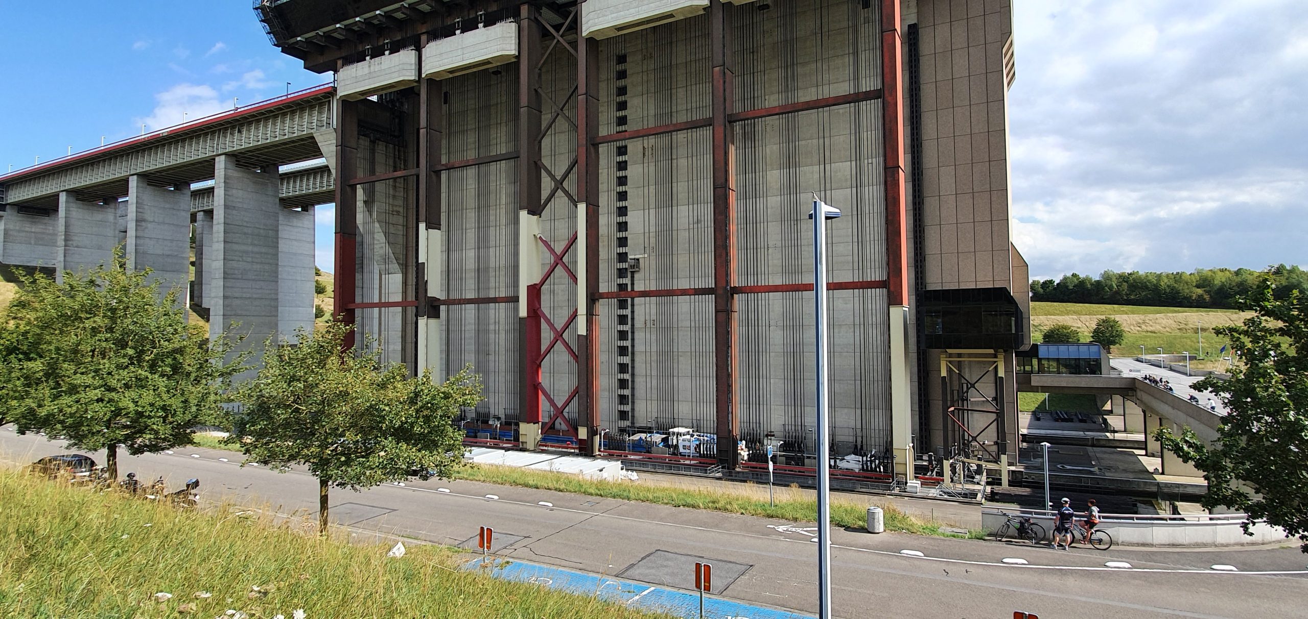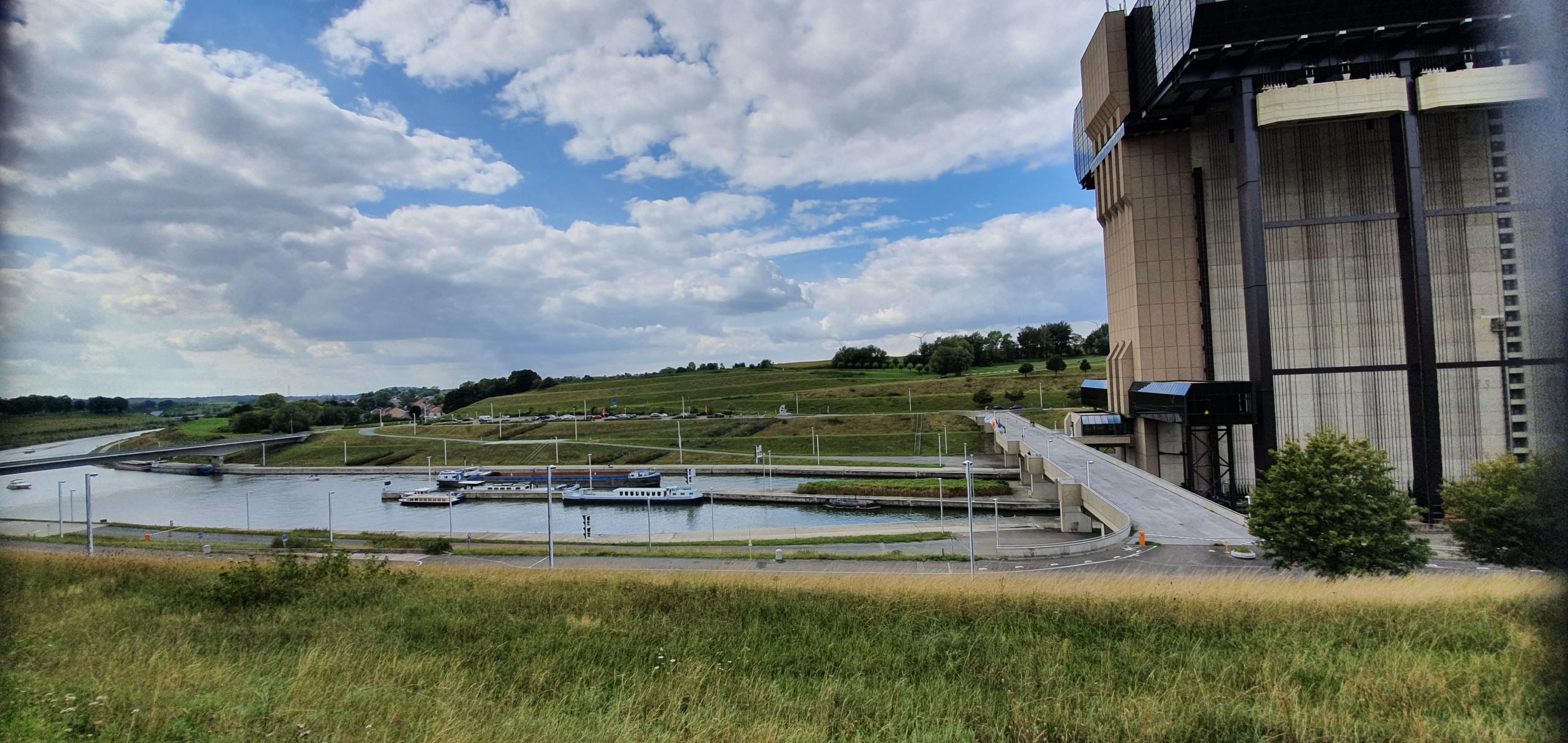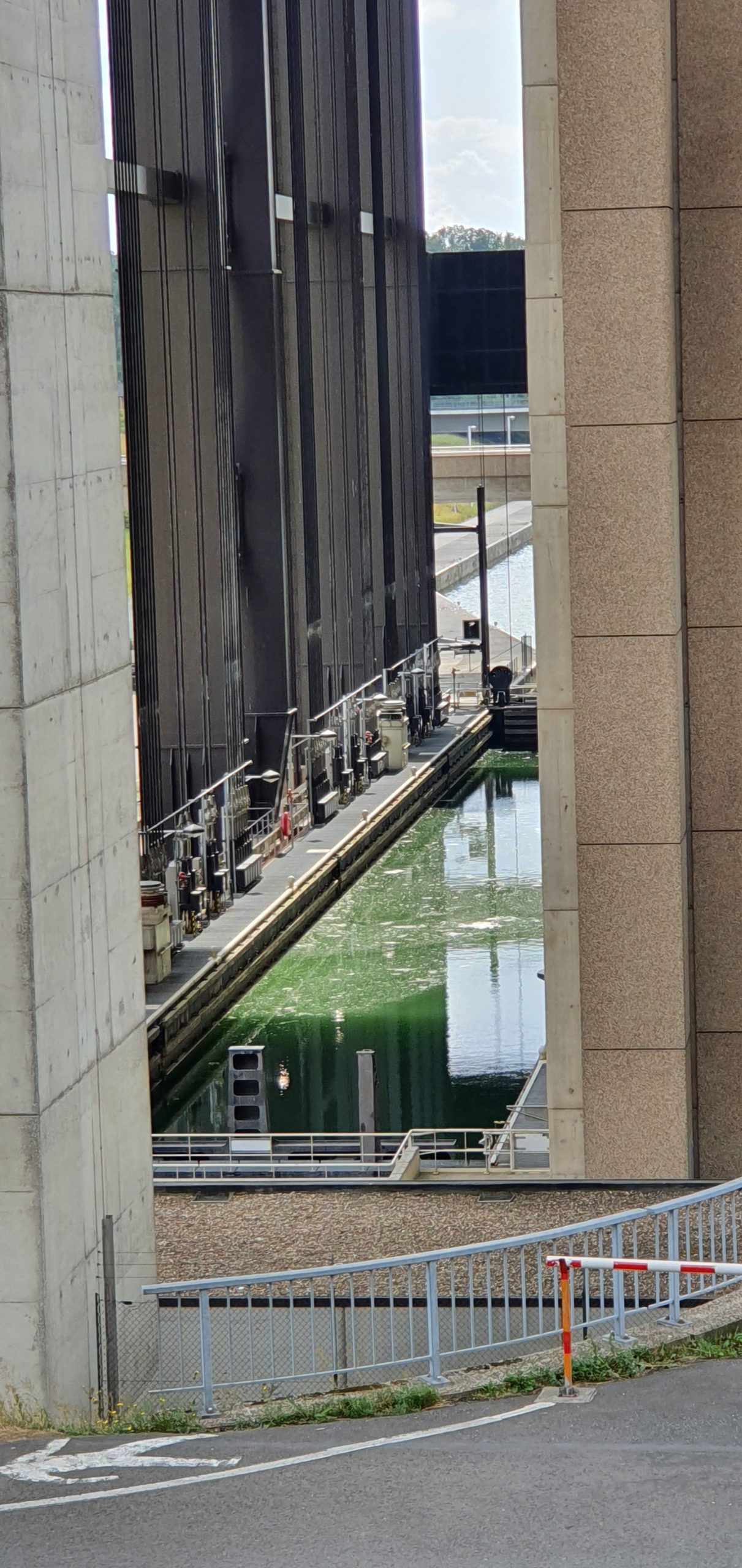 4th September – The overnight mooring at the Pont-canal d’Ascenseur turned into a two night stay at the top of this magnificent construction, and Nicki took the time to walk Casper down to the bottom a few times and take some photos of the site.