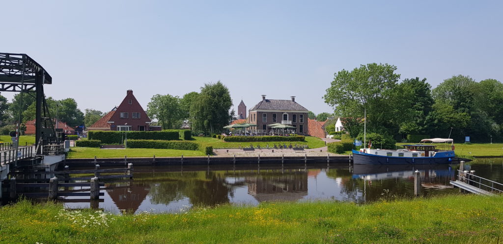 After our encounter with the customs officers we carried on down the Reitdiep until we got to Garnwerd aan Zee, mooring in front of one of the restaurants and just before the bridge. Beautiful sunny day and the locals were out in force sunbathing and swimming in the river. The restaurant would have been perfect for an evening meal, unfortunately it was super popular and fully booked for the two days we stayed there so we settled for a takeaway pizza instead.