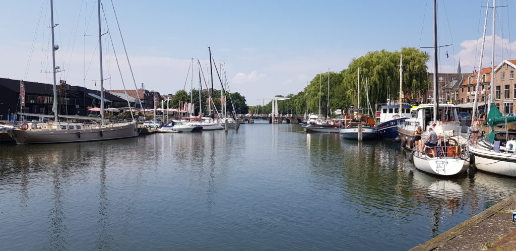 We stopped overnight at Medenmeer, only a small village but quite a peaceful location on this tree lined canal, and from there we headed to the Oosterhaven harbour at Medemblik. On our approach to this lovely town, we passed through two locks – the first we entered lifted us 4.5m and the second, another 1.5m – it’s just amazing how low some of the areas are in the Netherlands.