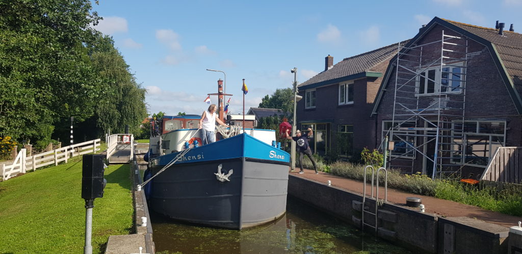 Eventually, with the bridge in Ouderkerk scheduled to re-open on the following Monday, we were able to move on once more, travelling for about three hours until we came across yet another mooring point which necessitated securing with pins – these past few days we’ve used those pins more than ever before – at the tiny village of De Hoef. During this layover I managed a quick fender repair (the damage being the result of sliding into a quay whilst taking a sharp bend – yet another one of my not-so-proud moments).