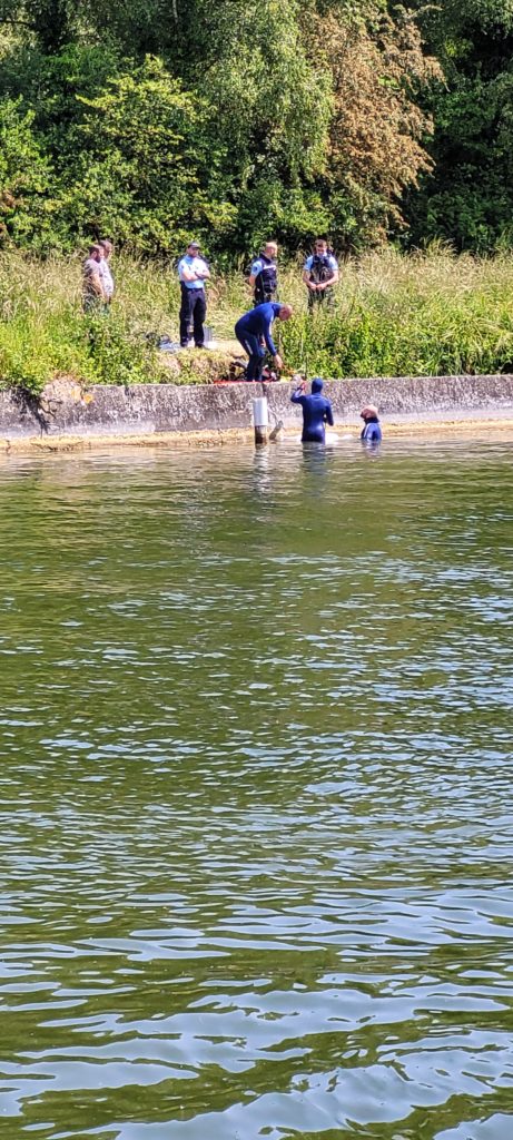There was no real improvement for Casper on our next day’s travel, but he was more settled so we decided to just keep him quiet with little food and lots of fluids. Continuing on, we passed our first ecluse onto the Canal du Nord, with the eclusier advising us that the canal would be closed for a few hours due to divers searching for a body in the water! Mooring up we took the waiting time to do a little boat maintenance, and then headed off hoping we would be ok to continue further. As it turned out, the closure was downgraded to a ‘slow down when passing’ notice, and as we approached the area we could actually see the divers with a body at the side of the canal – grim!