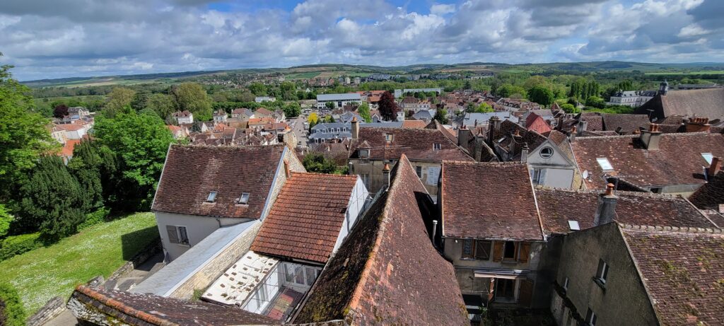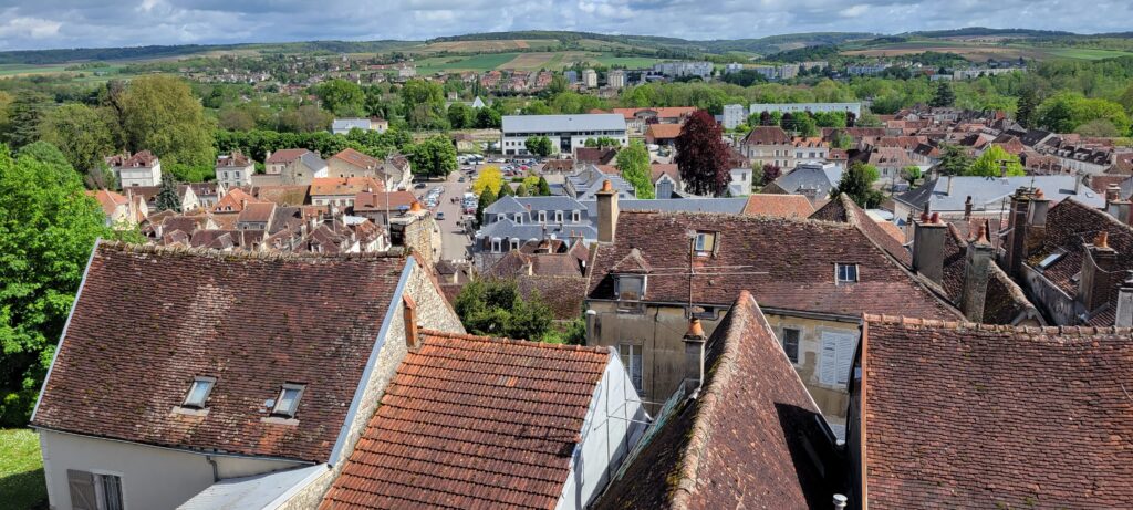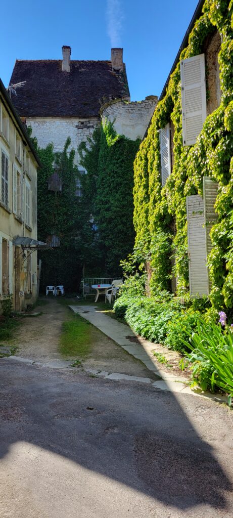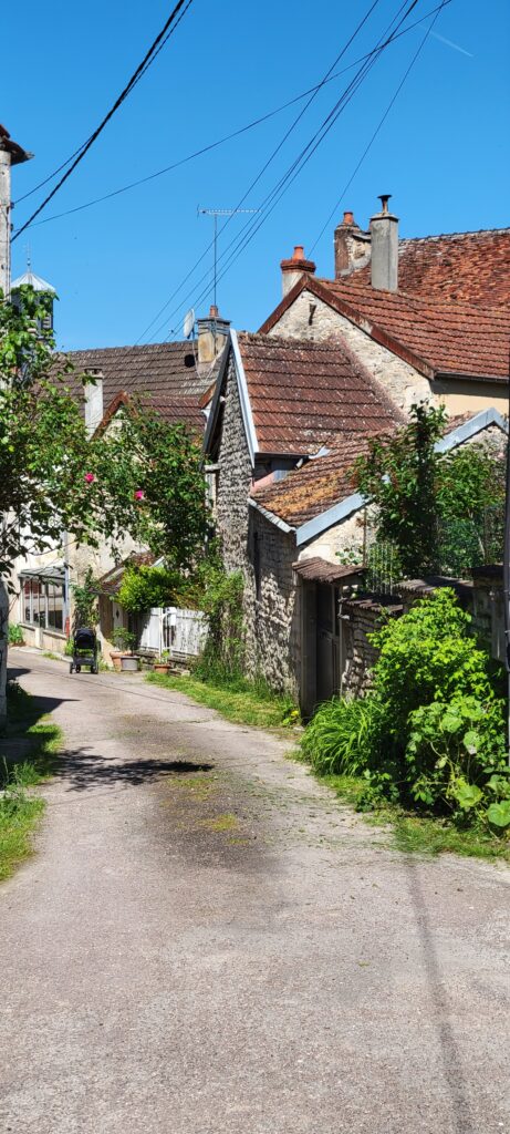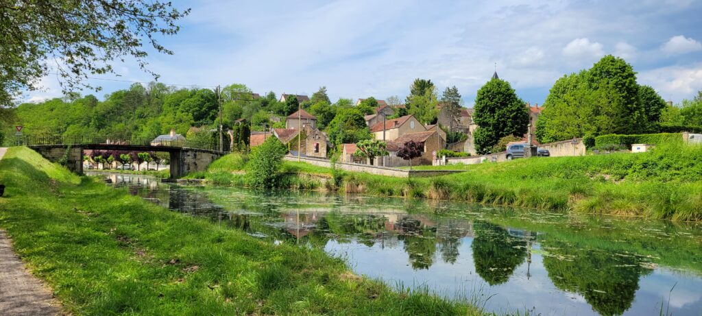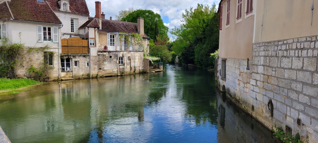 Moving on again after two comfortable nights in Ancy-le-Franc, we continued through another five ecluses to reach the small town of Ravières where we settled in for two nights, 10th to 12th May. Located in the ‘country of stone’, Ravières was mainly known for its white stone quarries which played a large part in the local economy (and it is possible to take a self-guided tour of a white stone quarry still in operation today, although we decided not to). In the town, there are remains of a 16th century castle, and still some old houses from the 16th , 17th and 18th centuries, as well as the remains of destroyed defensive fortifications – the town’s walls were mostly destroyed in 1591. There is also a wash house (lavoir) with seven openings, dating from the first half of the 19th century, which we could see as we cruised into the town.