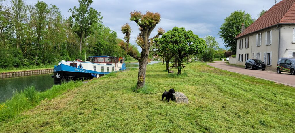 Our intention was to leave Buffon on 14th May, but we had not informed the eclusiers of this so we’re planning on just heading towards our first ecluse of the day and hang around until someone from VNF turned up, but luckily while Nicki was out with the dogs that morning she saw three eclusiers about to pass by so flagged them down to see if they could accommodate us at some point- the response was “do you want to go now”!!! So we quickly got ourselves together and set off again, this time for Montbard, and hopefully a local vet for Pip whose rabies vaccination was shortly due for renewal.