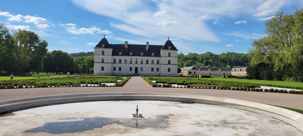 Continuing on, we negotiated another four locks today to finally moor at Ancy-le-Franc, where we were planning a visit to yet another chateau. This was a nice long stretch of grassy bank with just a few fishermen for company. We popped along to pick up a few extra supplies at a large supermarket about 20 minutes walk away only to find a sign saying it was closed for that particular day (8th May) … maybe that should have been a warning to us, but we agreed that I would head over again the following day (Nicki’s foot was aching after so much walking today) and do the honours. Our first full day here, we headed out to tour the castle with its more than 20 rooms and 123 acres of parks and gardens – although obviously we didn’t manage to walk round all of the grounds! Returning ti the barge, I grabbed the shopping trolley and on a very hot, sunny afternoon I set off to the supermarket … and arrived hot and uncomfortable to find it was still not open. And at this point I found out that the two days of our visit were both Bank Holidays, hence the closure of all the shops in the village. I think for the future we probably need to check not only our routes and potential moorings, but also if any visits coincide with public holidays.