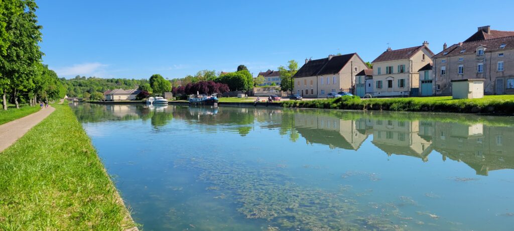 Moving on after two nights in this quiet location, we travelled through yet another five sets of locks ending our day at Lézinnes on a grassy quay just beyond the ecluse.