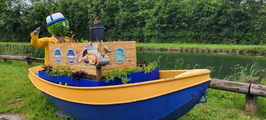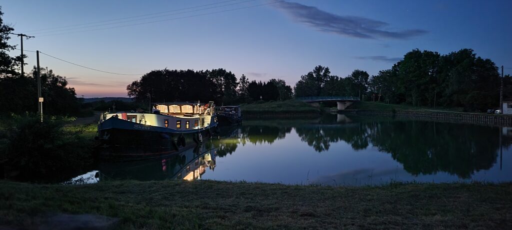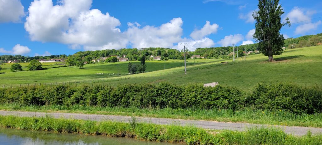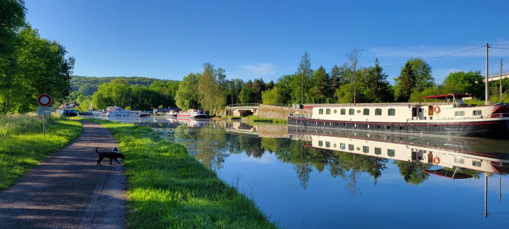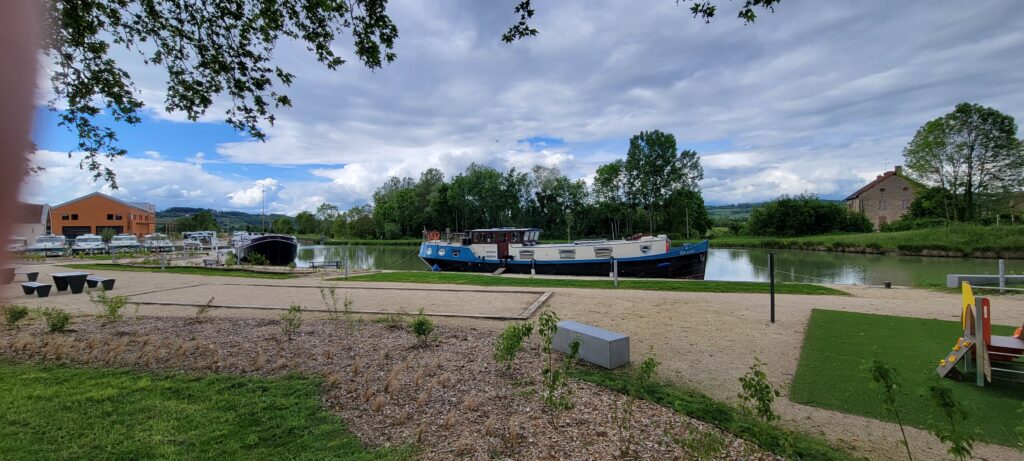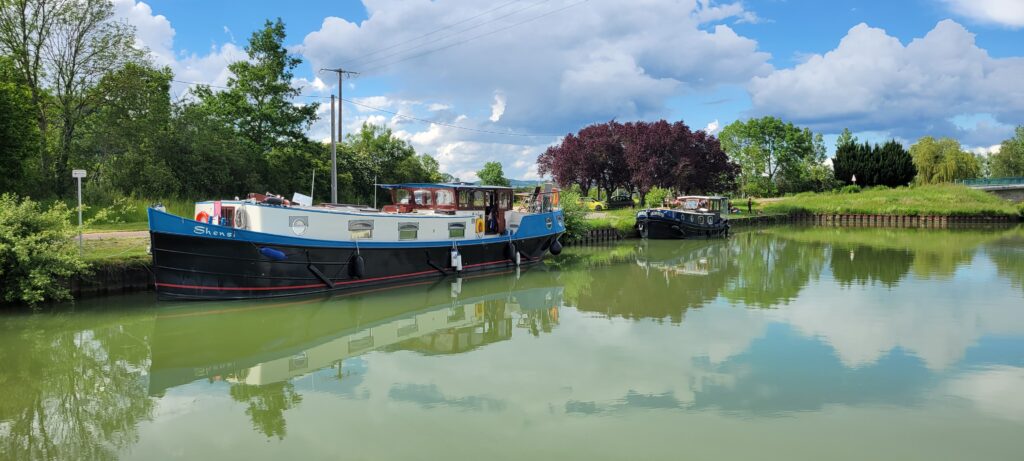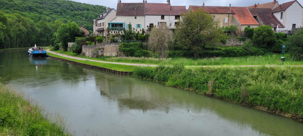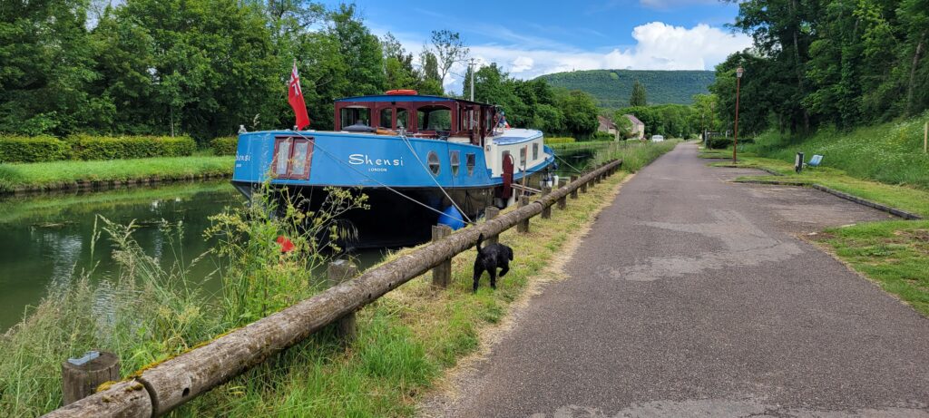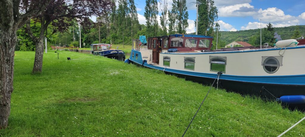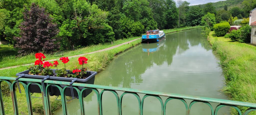 Waking up on 17th May – Happy 40th, Stuart – we continued along the picturesque Canal de Bourgogne passing through eight ecluses until we reached Venarey les Laumes and picked up a nice mooring alongside a small landscaped area (which the hotel peniche, La Belle Epoche, had priority over its use, but we already knew they wouldn’t be there at this time so that was fine).
