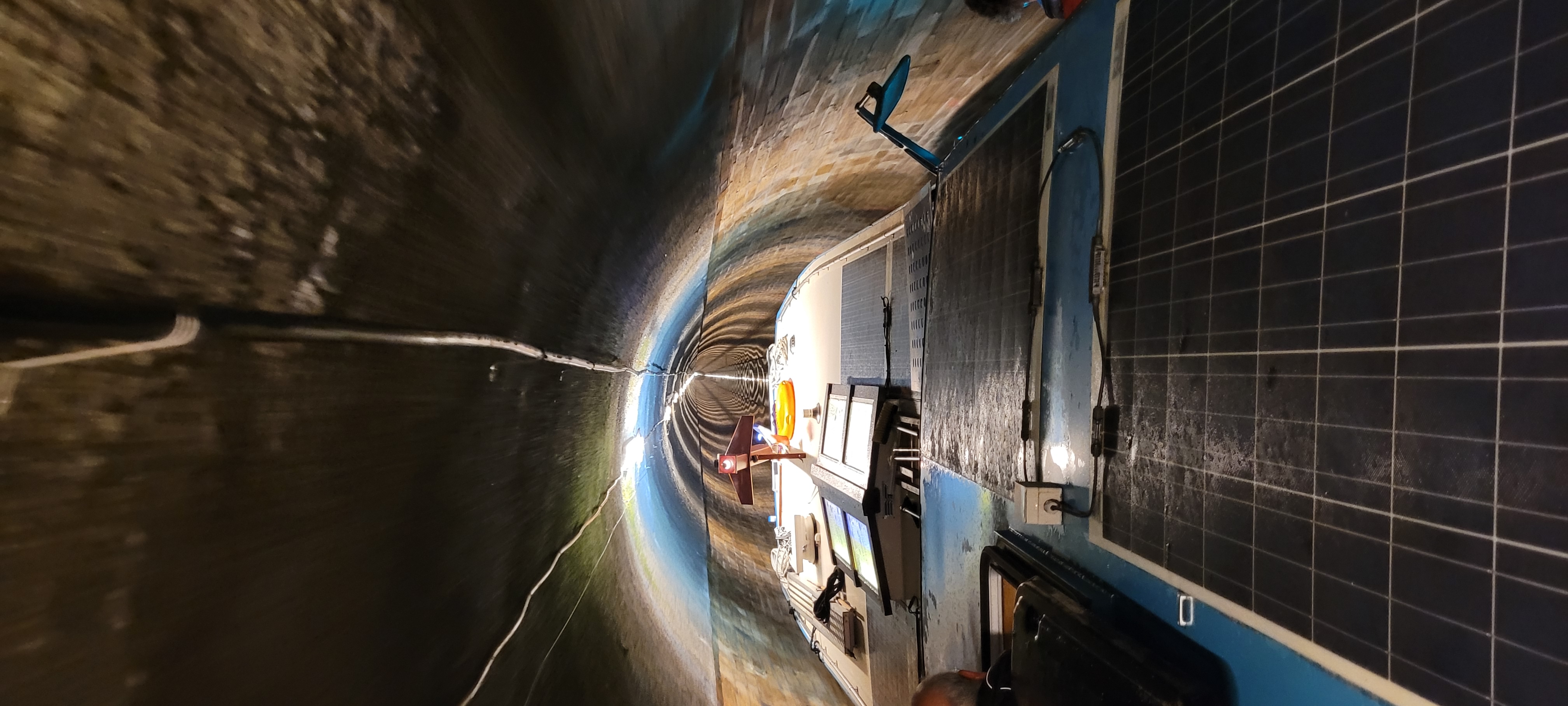 Nervously and excitedly waking in the morning, we readied ourselves for the ‘tunnel experience’, starting with taking down the wheelhouse before Tim and I visited the VNF office collect radios etc for the journey, and then it was D day for us.