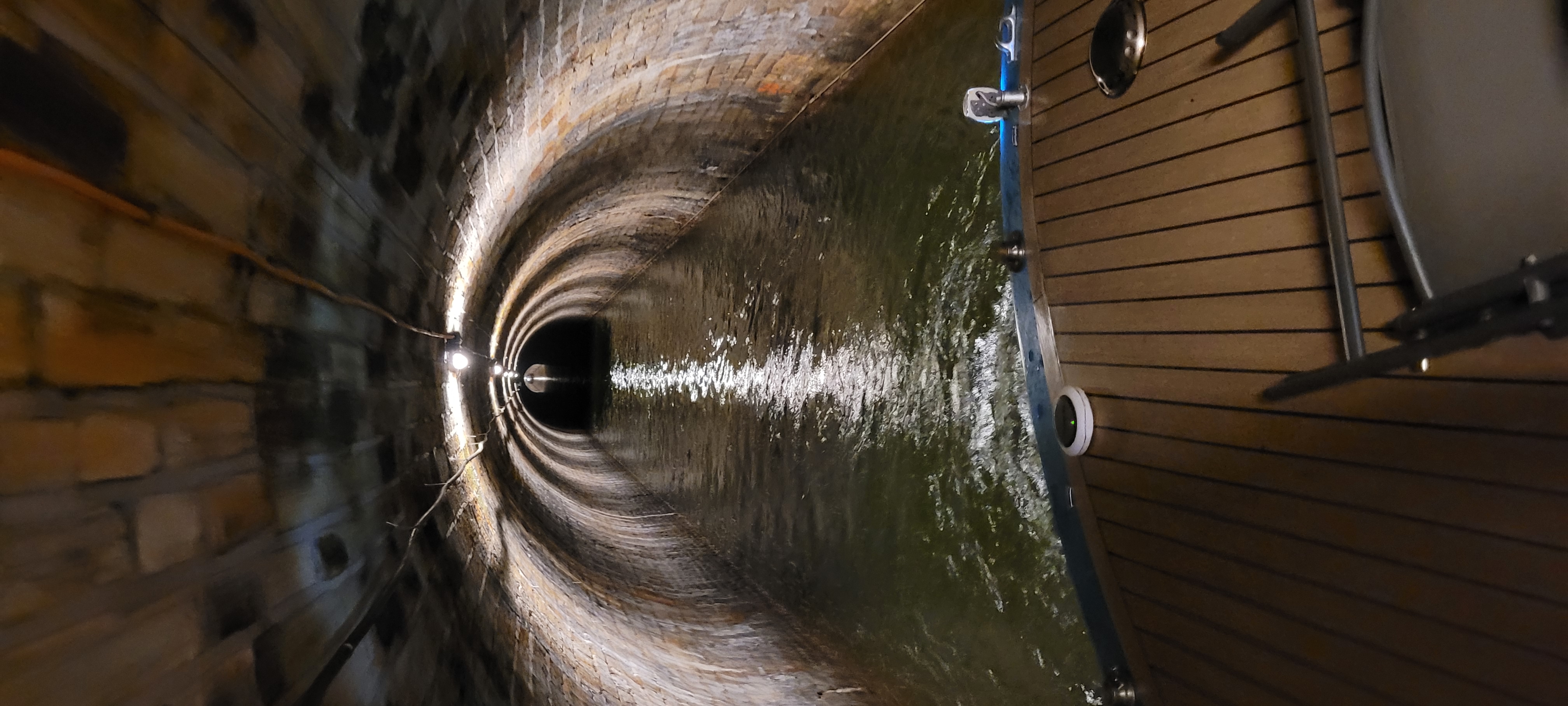 The weather had started off in lovely sunshine, but as often happens it soon turned to heavy rain for the rest of the journey, which involved yet another 13 locks. By the time we arrived at our next destination of Pouilly en Auxois, Nicki was drenched and freezing cold, and on her second change of clothes after the first set became just too wet to suffer any more! At the final lock I popped into the VNF office to reserve a travel slot through the Pouilly Tunnel (Pouilly-en-Auxois underground or Burgundy canal vault) for the following Sunday, 26th May. After mooring up, we wandered up (twice) to the nearby supermarket to replenish supplies, Nicki took the dogs out for a good walk, and I took down the stern rails in preparation for the tunnel.