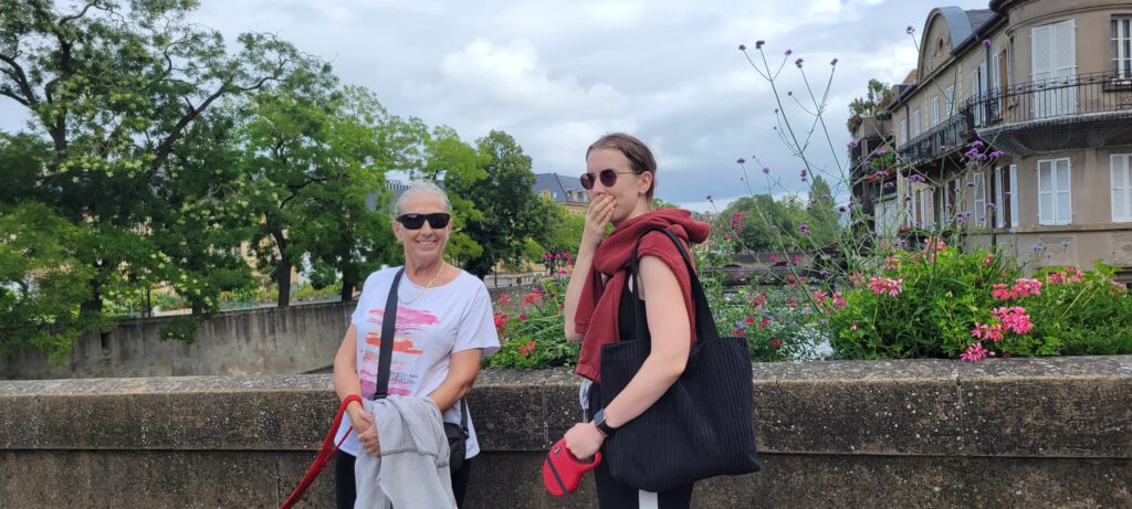 Amy’s next two days with us were over a weekend, so she was able to spend the whole of the Saturday away from Shensi – we decided to take the train into Luxembourg city to show her around (although on arrival at the train station we found that trains were cancelled due to rail works, and so we had to catch a replacement bus). Based on our own previous visit, we headed straight to the City Tourist Train and Nicki and Amy were transported around the city to be shown it’s delights, whilst I sat with the dogs waiting for their return. Then it was time for food and drinks, more walking through the beautiful park (Parc Drai Eschelon) at the base of the Casements (hard to believe you were actually in the heart of the city), looking at the various shops and places of interest, before taking the bus back to Thionville later in the day.