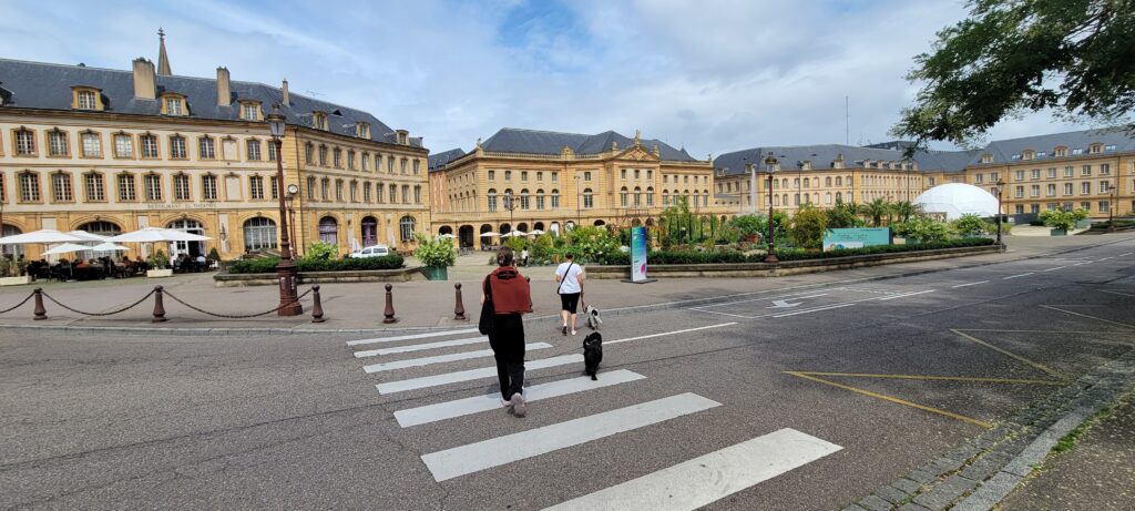 After several hours of being tourists, we plumped for a ride on the Metz City Tourist Train (dogs allowed this time), and trundled around the quasi-cobbled streets to catch sight of even more local attractions and buildings, with a good party of the journey taken in the rain! Luckily the train was covered so it wasn’t so bad.