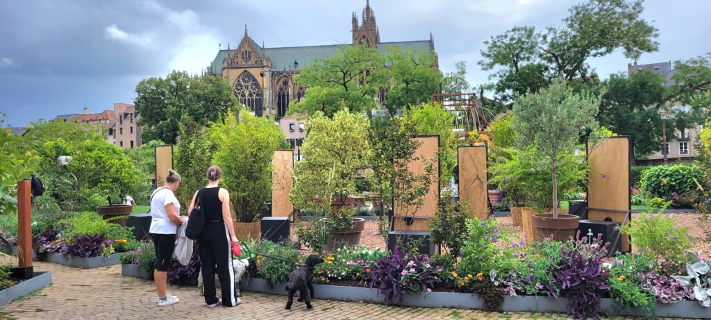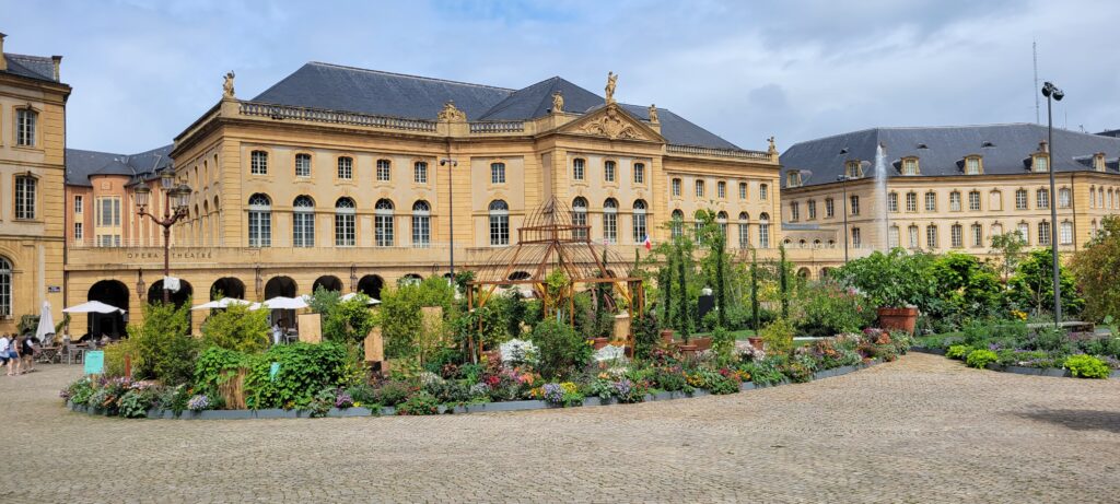 The next five photos show the approach to the pop-up gardens outside the Opéra-Théâtre de Metz Metropole, in Comedy square which showcase a series of small gardens each with its own nod to one of the senses.