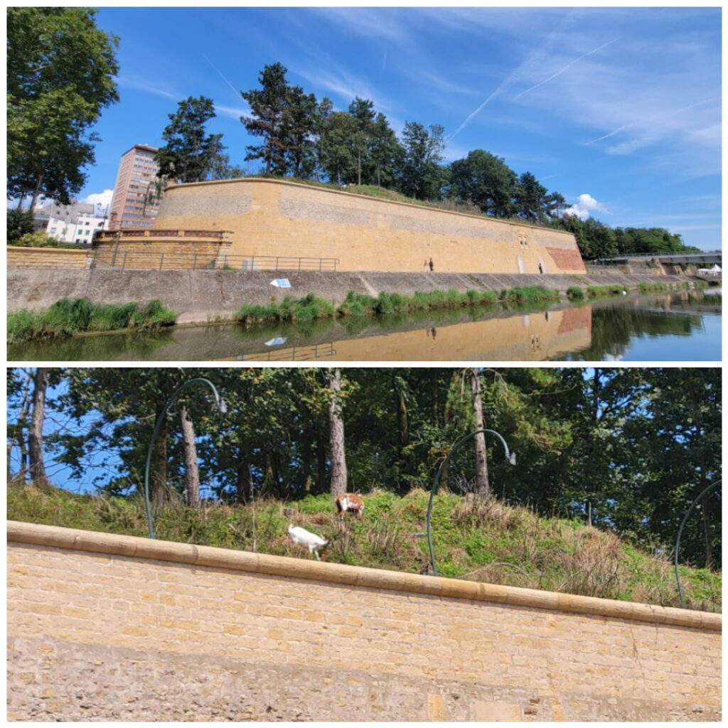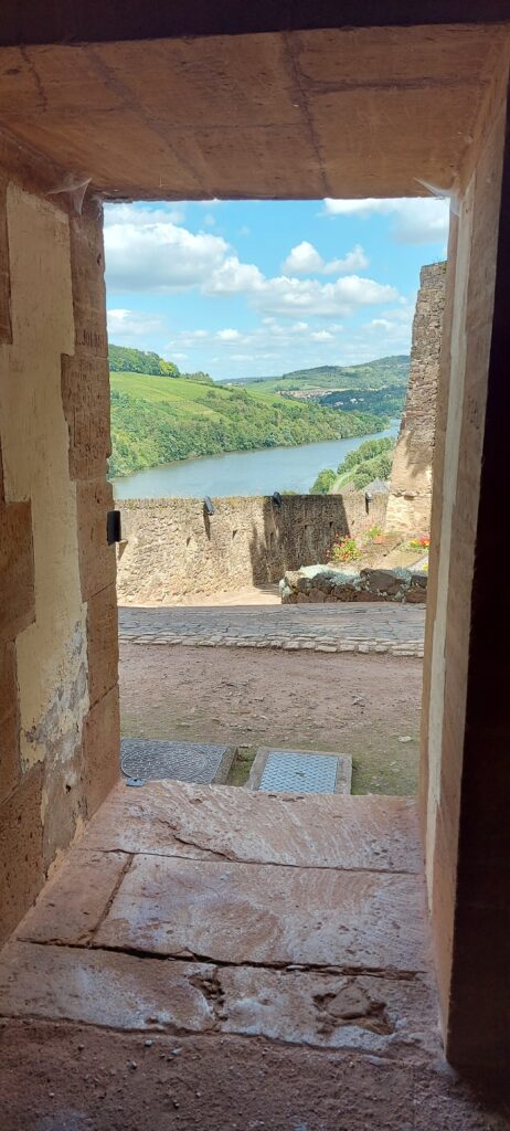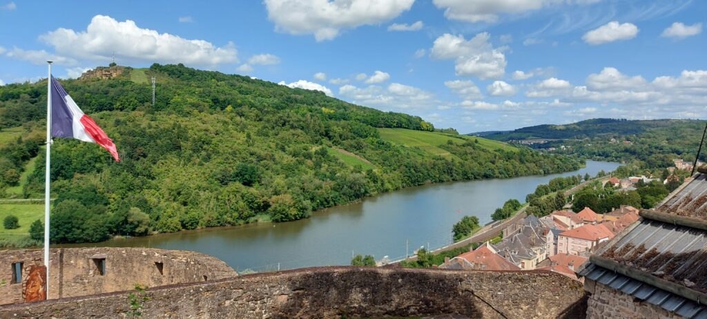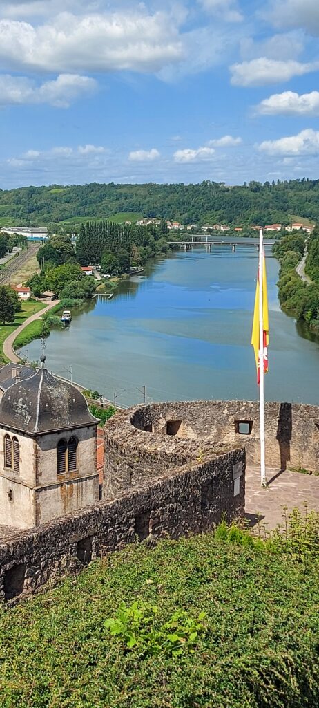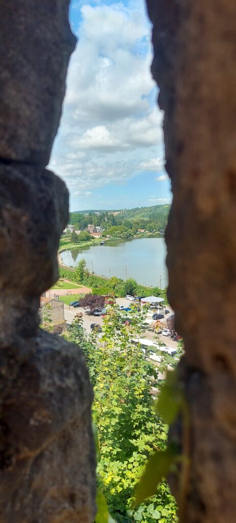 For ease of Amy’s early start on her final morning, we decided that it would be best to return to the marina in Schwebsingen for her last night with us, so we set off with the intention of stopping at Sierck les Bains so that Nicki and I could visit the Chateau des Ducs de Lorraine, a fortess overlooking the river that we had spotted previously, whilst Amy stayed on the boat working. We were able to moor up extremely closely, and made the short walk up the hill to the entrance. With the high temperatures it was quite pleasant inside of the walls of the chateau, and there were some spectacular views across the surrounding landscape and river.