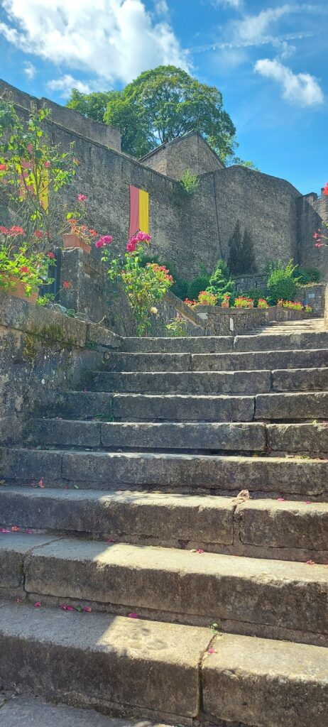 The following day Nicki and I cycled over to discover the town, and it proved to be a little gem with a few interesting features, a waterfall, a system of water channels directing the water to a working mill and pretty little streets. And a nice cafe overlooking the water, all surrounded by flowers.