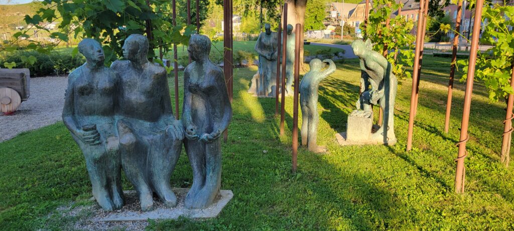 With no fixed stopover in mind we cruised along, and keeping a lookout for somewhere reasonable, eventually mooring in Wincheringen (just a couple of kilometres from Wormeldange which is apparently the capital of the Reisling portion of the Moselle) along what appeared to be a fairly new stretch of quay, well maintained and next to a lovely landscaped green area and a play area, with a (shared) cycle track alongside the river.