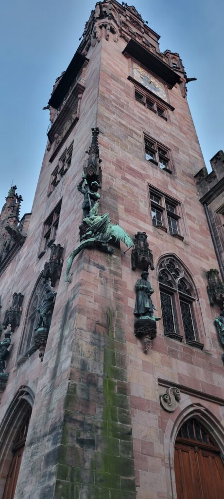 That evening we walked into the town centre and saw the beautiful exterior of the church with a pretty spectacular stone St George and the Dragon high on one of its walls.