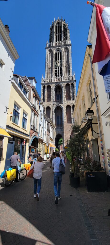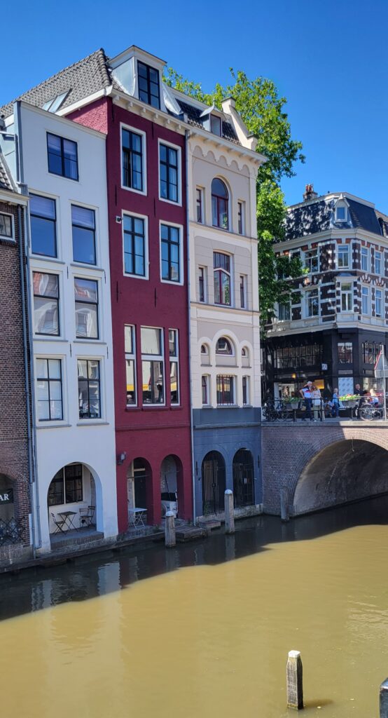 Utrecht proved to be a lovely, bustling city, less crowded and less bike-filled than Groningen or Amsterdam, and with lots of interesting and pretty buildings all around. Flowing through it’s centre is the Oudegracht (‘old canal’), built in the 10th century it is the oldest canalized waterway in Utrecht. Unfortunately risks of flooding meant that the street levels had to be raised, giving way to the city’s split level design – the more central riverside levels are mostly given over to cafes, bars and restaurants, but on the outer edges it all became more residential with lots of flower displays setting off the picturesque homes.