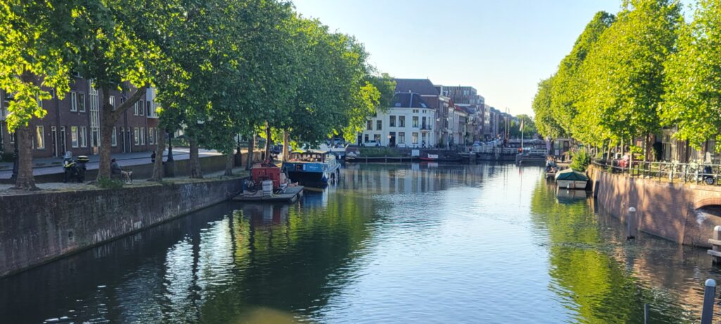 As an aside, every spring thousands of fish swim through Utrecht’s canals and waterways searching for a place to spawn and reproduce. Weerdsluis is a manually operated lock and when the lock gates are closed, fish are forced to wait to continue their journies, wasting valuable time and energy, as well as making them easy prey for birds and predatory fish. With this in mind, to assist the fish an underwater livestream camera had been installed at the lock and can be viewed on an interactive ‘Fish Doorbell’ (Visdeurbel’) – if fish appear onscreen, you press a virtual doorbell to alert the lock keeper, who will open the lock once many fish are waiting and allow them through. The Fish Doorbell can be ‘rung’ from early March to late May – in 2024 alone the Fish Doorbell attracted worldwide viewings from around 2.7 million people. The project has gained global recognition, helping people worldwide learn about fish migration and Utrecht’s underwater world. Lucy had already mentioned this to us, so it was exciting when we realised that we were actually passing through.