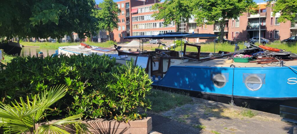 These moorings were outside of a fairly recently built prefabricated residential building, on the site of the former Betonmortel Fabriek Utrecht (BEFU) in the Hoograven district of Utrecht. We learned that the building was constructed within six months and residents began living inside within the year! Parts of the original industrial buildings, some dating from the 18th century, had been left standing as a reminder of the area’s history.
