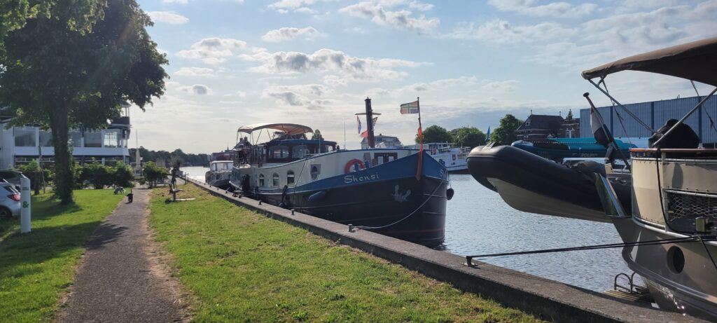 The last day of the first half of June and we made an early start to head into Leidschendam, a mere half an hour away, and positioned ourselves along a stretch of riverside moorings right next to a busy cycle and roadway and houses, but within just a few minutes stroll from the centre of town.
