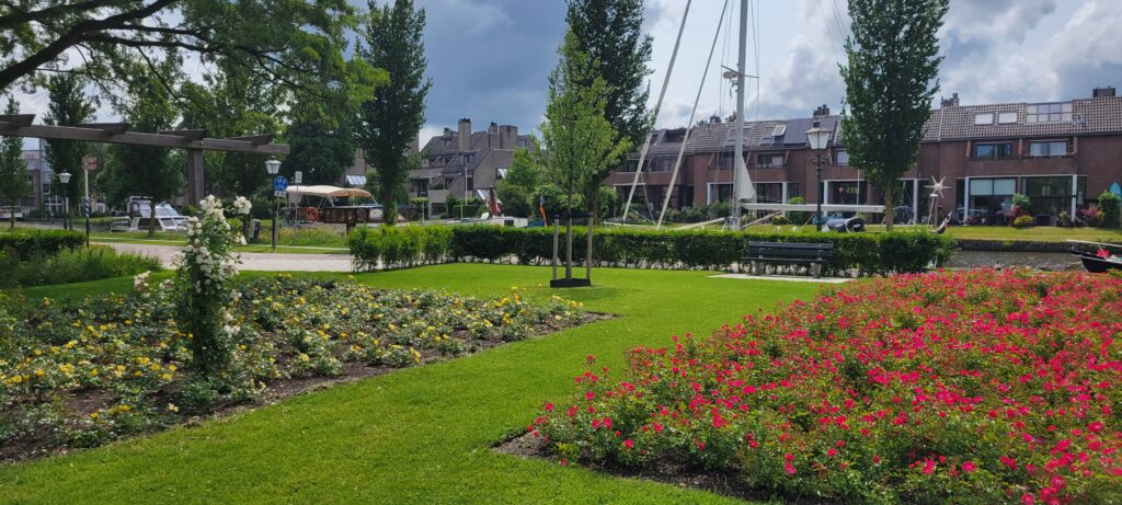 Having stayed the maximum permitted time of three nights (as per usual), we carried on to our next destination just shy of two hours away and arrived at Park Rozenrust, Leidschendam. This mooring was a literal perfect fit for us 20m looking for our almost 19m length, so we had it all to ourselves. The mooring was however only accessible from a little park next to it – seemingly ideal until we spotted the ‘dogs forbidden’ in and around the park! A slight conundrum as to leave the area we had to walk them through the park for several metres!