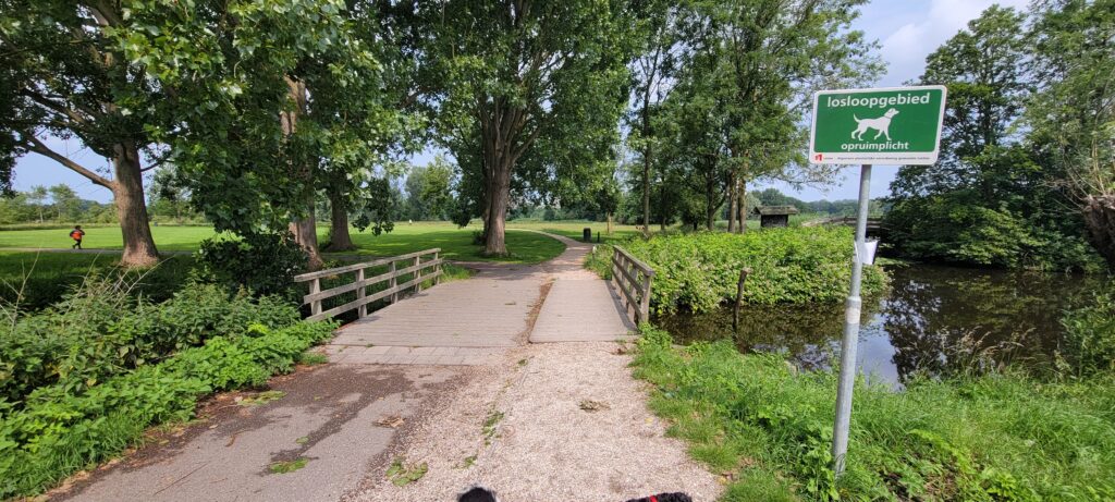We stayed in Leiderdorp for the permitted three nights, finally moving on despite the poor weather. Fortunately we timed it well and managed our short hour’s journey to Leiden with no rain, although the wind did pick up a little. Our first targeted stop was fully occupied, so we carried on to the next mooring, which turned out to be almost ideal, right outside of the ‘Polderparc Cronestyn’, Leiden, where a large percentage of the polder was given over to dogs off-leash.