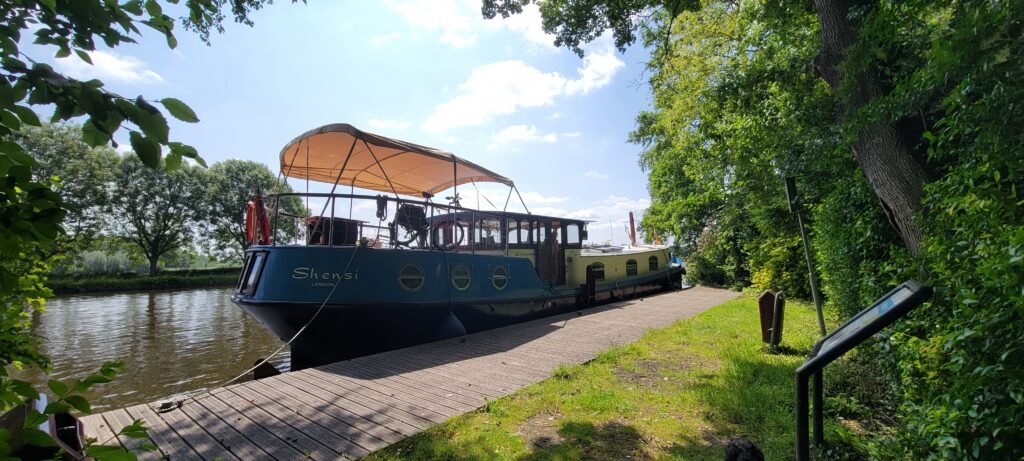 That mooring wasn’t the greatest -lots of rocking due to commercials rushing by, and very little in the way of safe walking with the dogs – so we moved on the next morning. Still on the Oude Rijn, we travelled for just an hour until we found an empty length of moorings at the edge of Alphen aan den Rijn (a small district named Hazerwoude-Rijndijk). Despite being close to a busy-ish road, traffic noise was fairly unobtrusive. Just a short distance from Shensi were some walking spaces for the dogs, so we ended up staying there for a couple of nights, and over this time I managed to get some prep work carried out on the wheelhouse prior to fully re-painting it