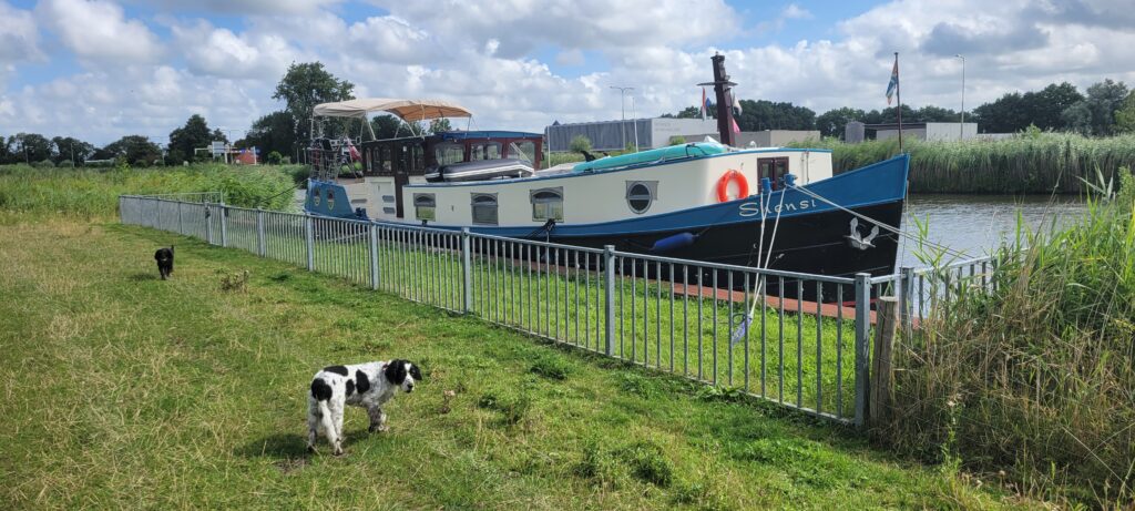 Finally though, Nicki’s trip came to an end and she arrived back home on 12th to two excited dogs and one tired husband. By then I had returned to the mooring at Heerhugowaard, which was nice and close to a train station, and then the next morning we moved further along the river again, just for a night. With weather forecasts good for just a few more days, we left early-ish (for us) and pushed on, with a brief stop at Winkel for supplies, until we reached Middenmeer, a place we had had moored four years previously, so that the following morning we would be in a good position to reach and cross the Isjllmeer in favourable wind conditions. Whilst there we managed to fill up with over 1000 litres of water, which meant that finally the washing could be done!
