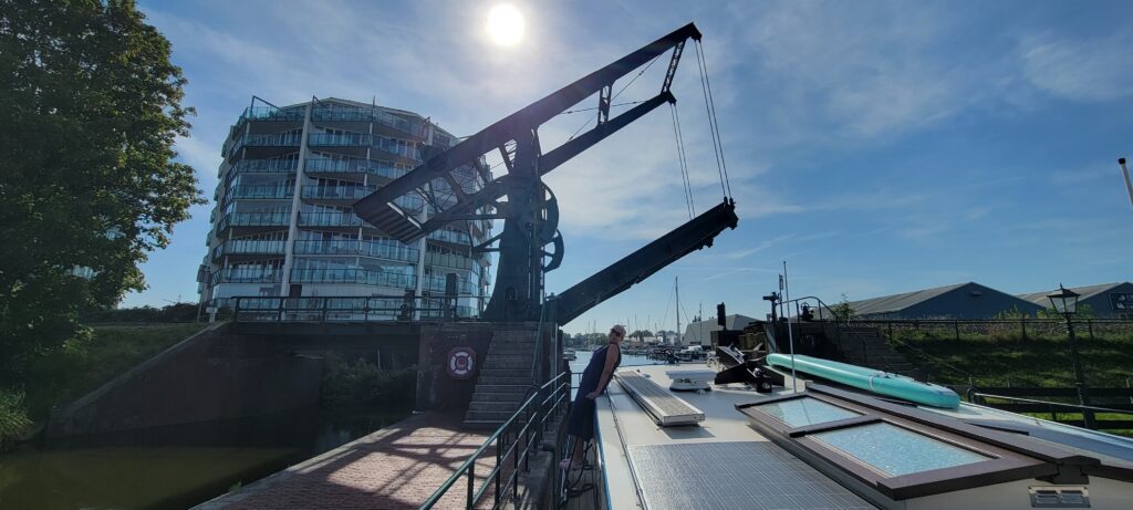 The first lock we came across had an historic rail track crossing the sluis. This was used by a steam powered rail train and only closed between 12 and 2pm each day for the train to pass. Otherwise it remained in its open position.